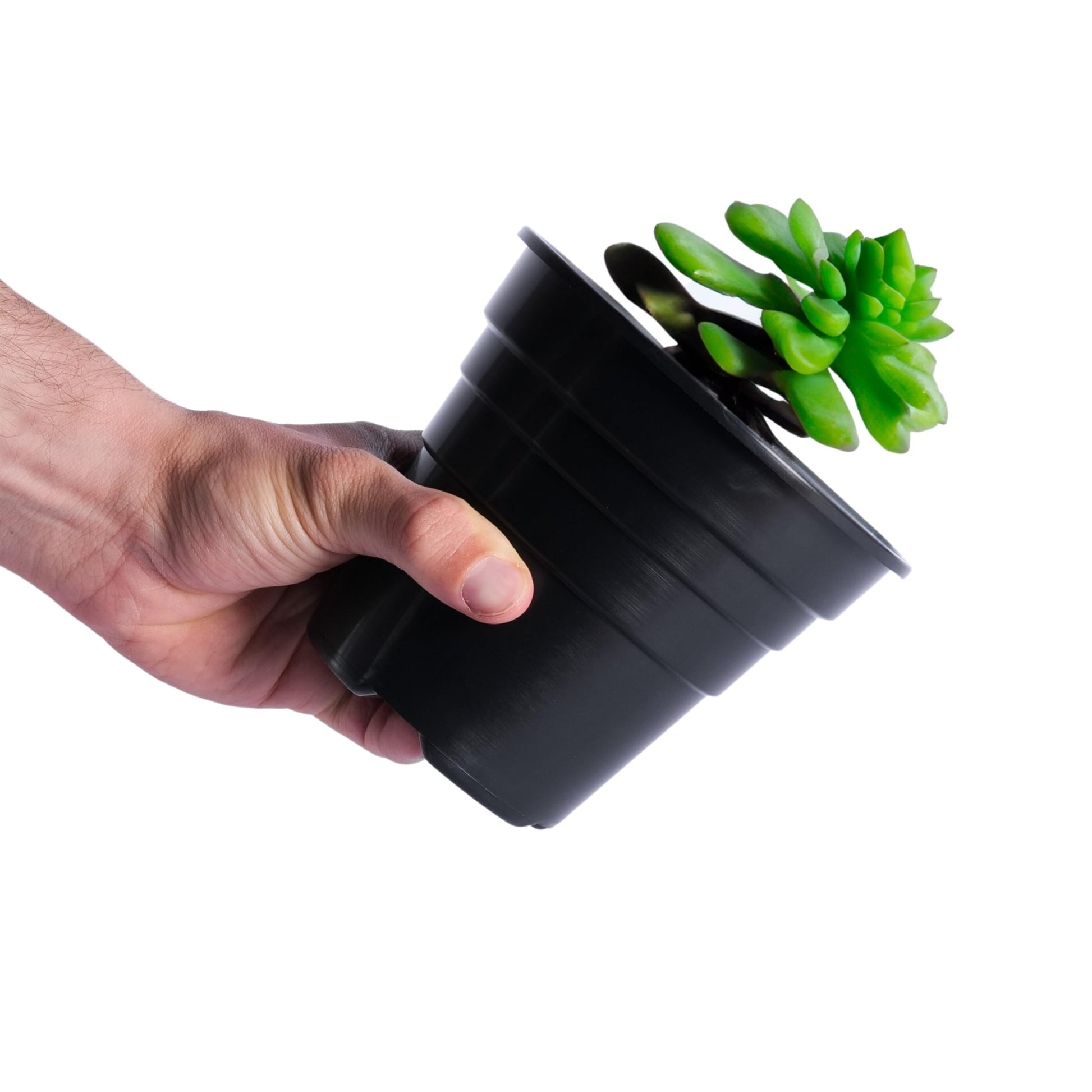 Happy Pots - 15cm Gloss Black - Pack of 10 Premium Plastic Plant Pots - Reusable Flower Pots for Indoor/Outdoor Home Décor Gardening - Round, Heavy Duty, UV Resistant, Recyclable - Made in UK