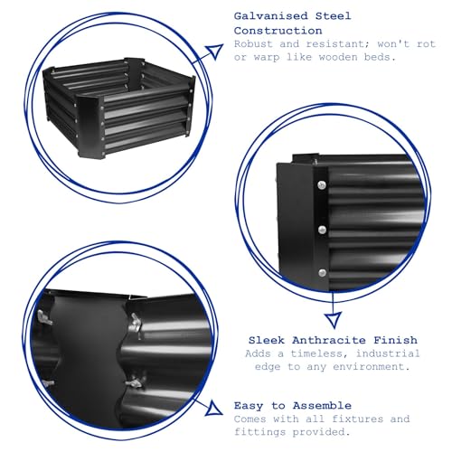 - Sleek Anthracite Finish: Featuring a timeless, industrial anthracite finish, these raised beds bring a modern aesthetic to your outdoor space. The neutral color complements any garden style, offering both functionality and visual appeal.
