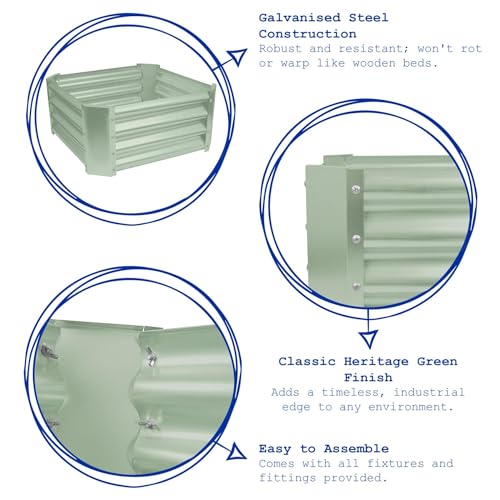 - Timeless, classic heritage green finish: Featuring a sleek heritage green color, these raised beds add a stylish industrial edge to any outdoor space, blending seamlessly with your garden and providing an elegant, functional addition to your landscape.
