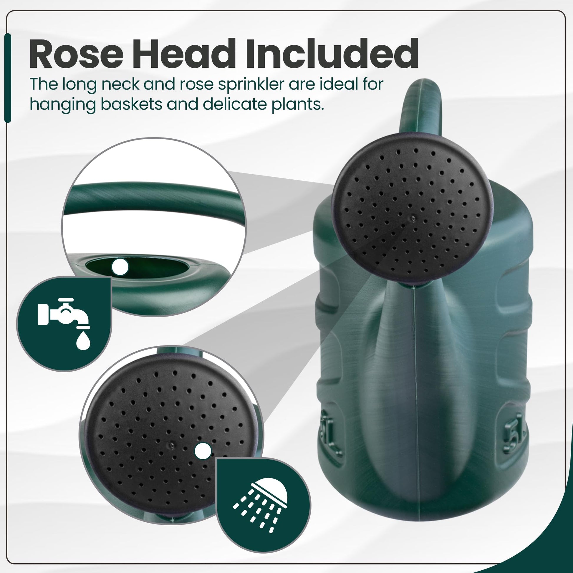 Hardys 10L Green Rose Watering Can - Outdoor & Indoor Watering Can with Detachable Sprinkler Rose Head, Long Spout Water Can for Houseplant & Garden Plants