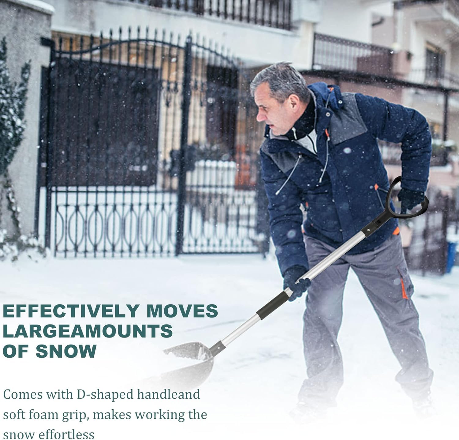 - 2.【Premium Handle】The Snow removal for driveway, The length of the handle can be regulated, aluminum material , sturdy, but ultralight, D-ring handle deisgn is easier to hold.