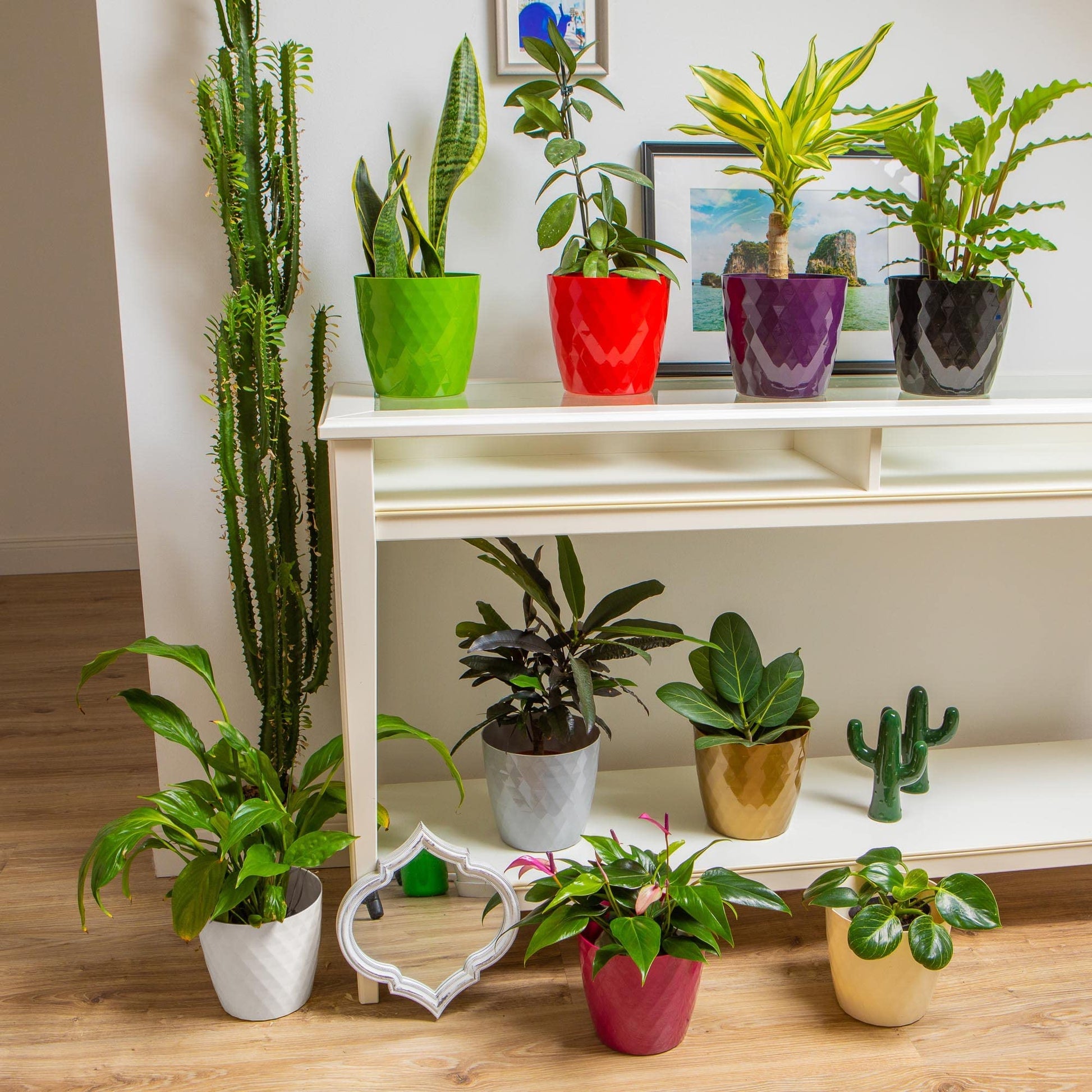 - š¼ Plastic plant pot high-quality, with unique glossy crystal surface shaped. Material is excellent alternative to easily breakable ceramics pots for plants or terracotta plant pots.