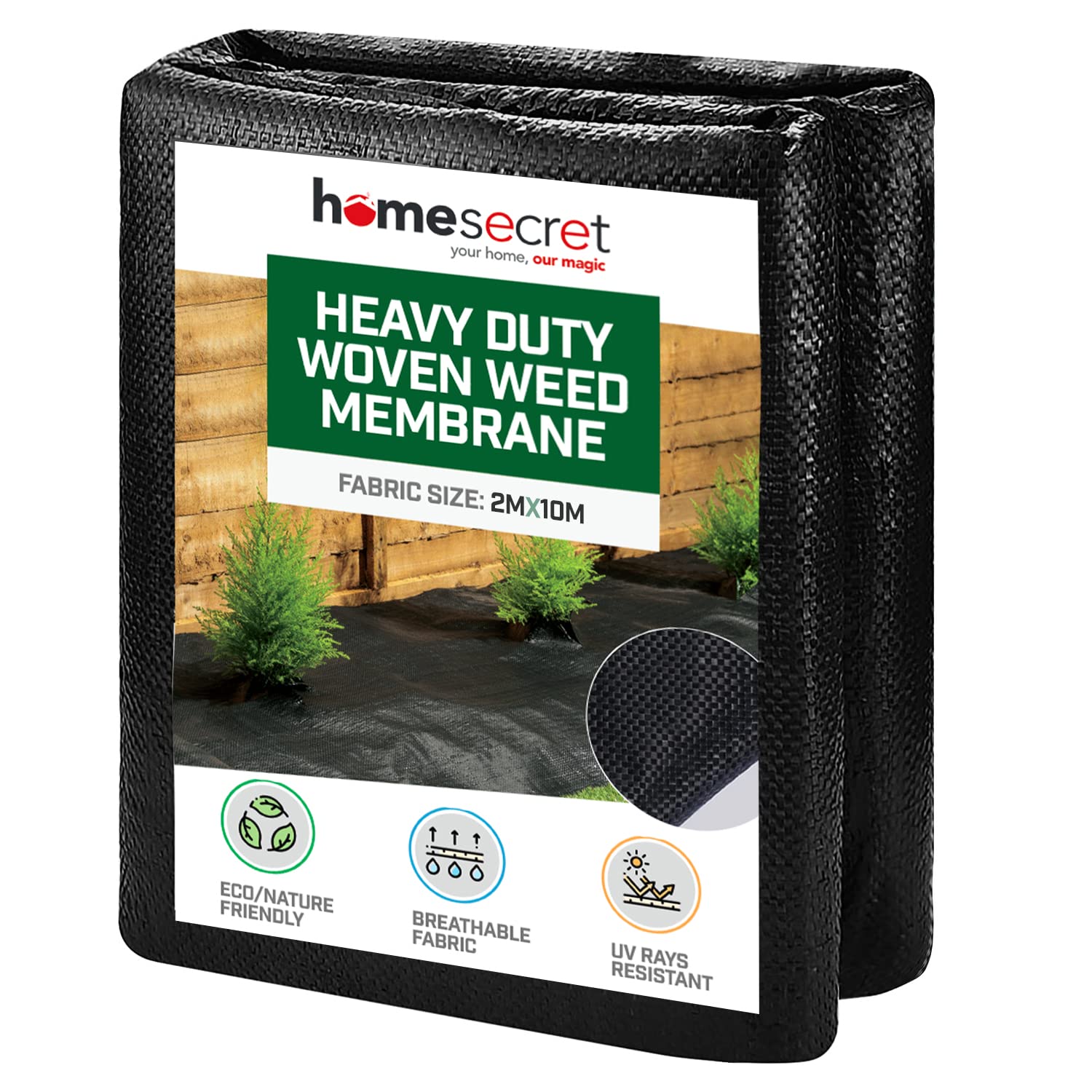 Homesecret 105 GSM Weed Membrane Heavy Duty - 2M x 10M Weed Control Membrane - Garden Membrane Weed Control - Weed Control Fabric - Landscape Fabric, Weed Barrier Fabric, Weed Matting - Black