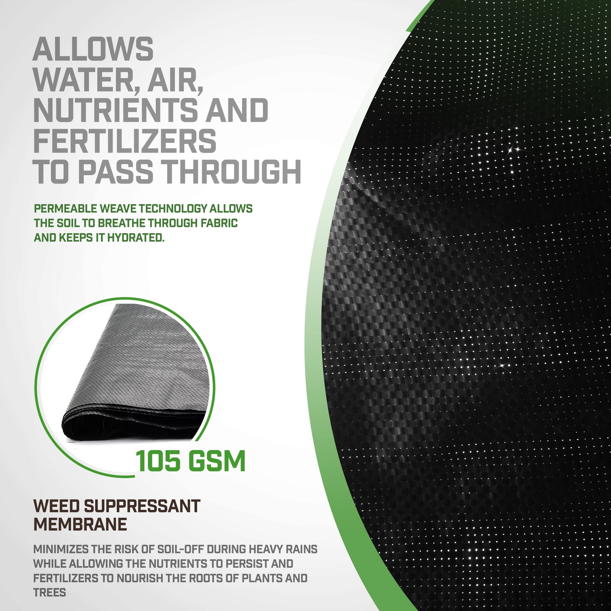 - 105 GSM - 2m wide and 10m long, 105 gsm thick weed membrane meant to last long, keeping your soil, plants and vegetable patches safe. The landscape fabric forms a reliably effective barrier to those pesky weeds