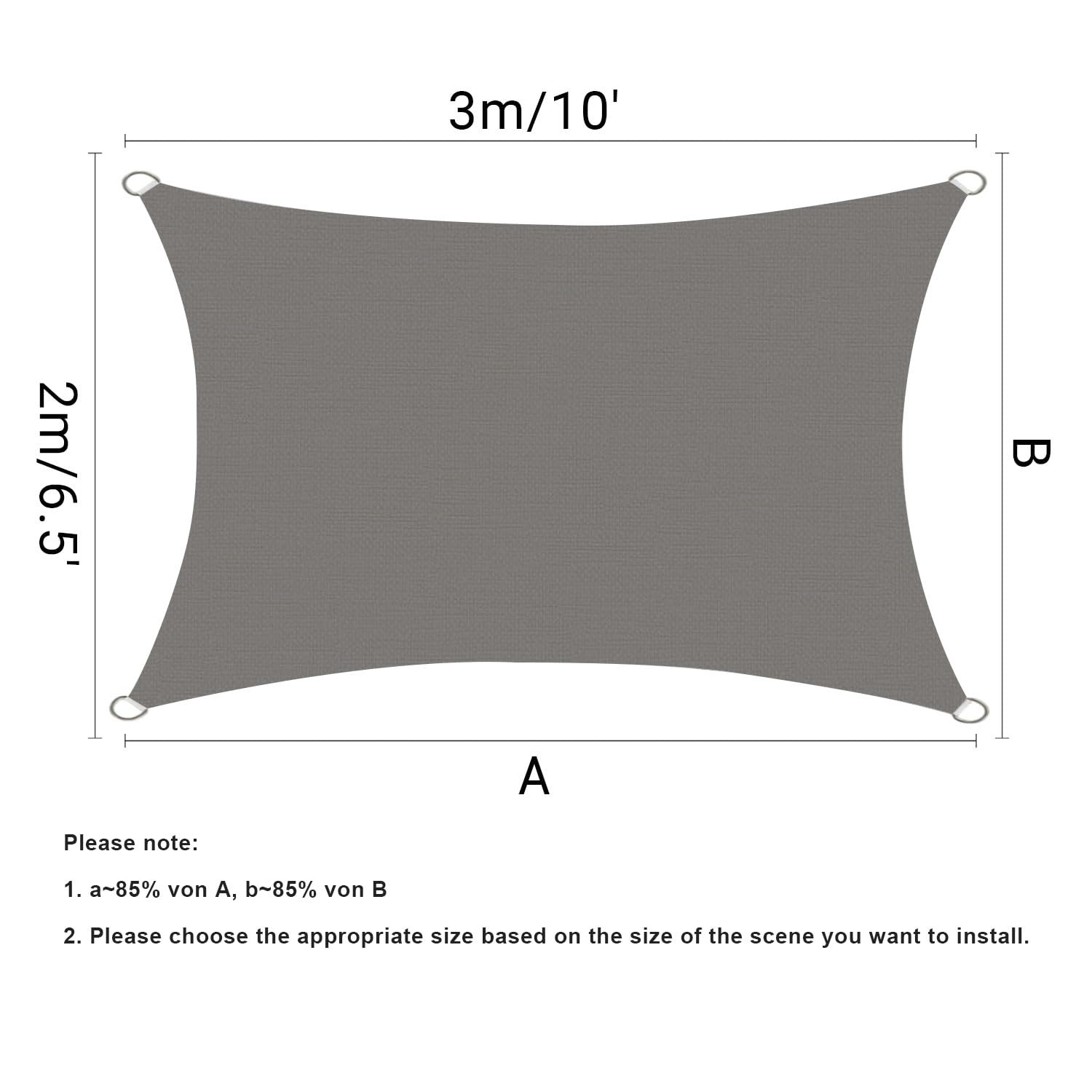 - 【Easy to install】Each corner has a stainless steel D-ring, which can be easily and safely installed with ropes or fixing kits. Tip: Leave 1.5-2 feet between the anchor pile and the sun sail for hook or rope installation.