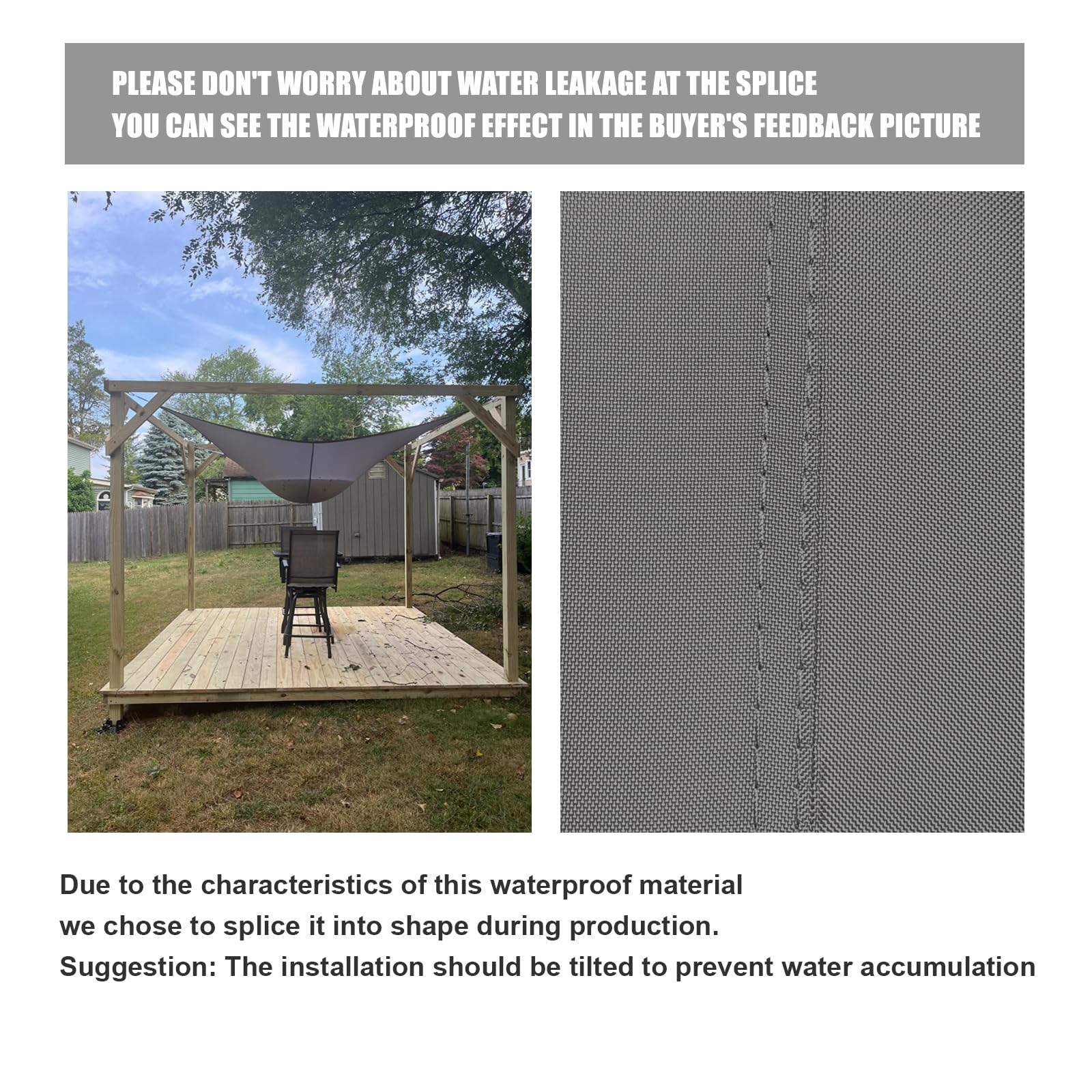 - 【High Quality Sun Shade Sail】 This sunshade sail is made of high-density polyester , resistant tears. Continuous heavy rain may cause slight water seepage.