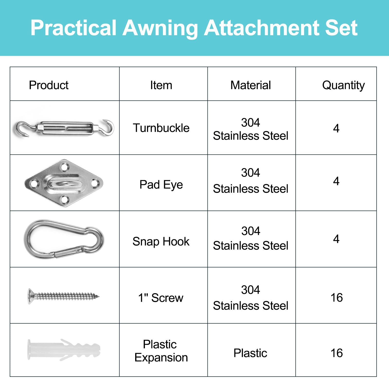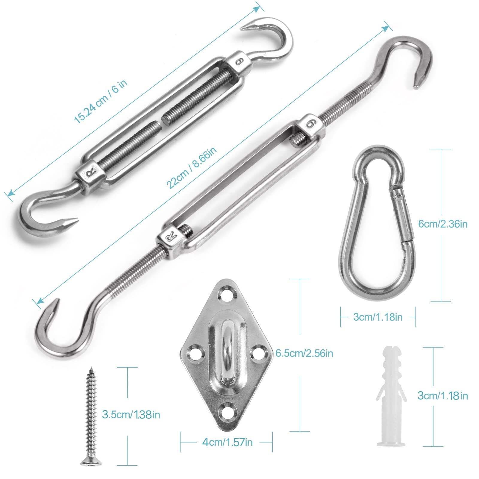 - Heavy Duty Sun Shade Sail Fixing Hardware: Made from top stainless steel, durable, rust-resistance, robust and safer.
