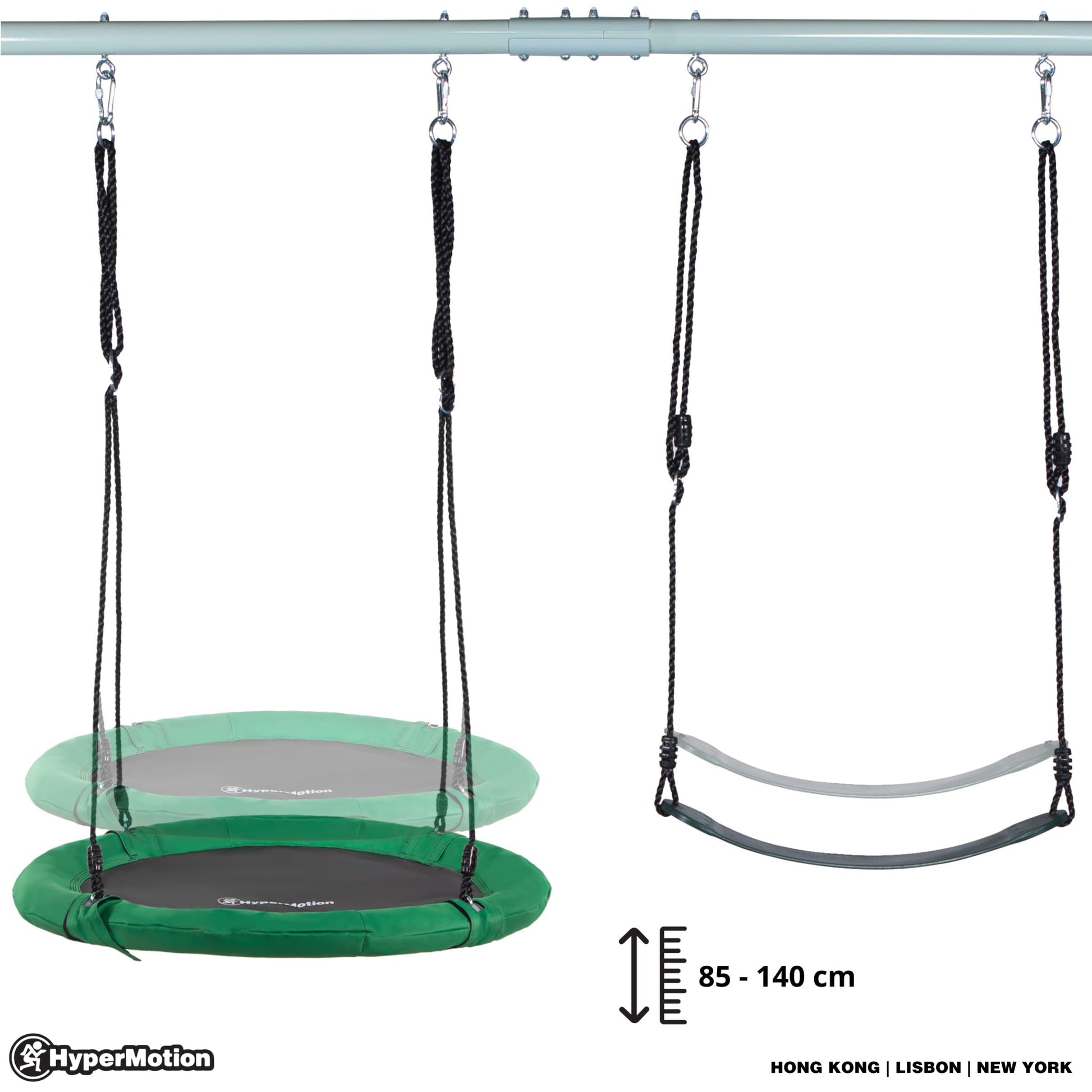 - Adjustable Rope Length: Both swings feature easily adjustable ropes (0.85 - 1.4m height range) with secure locking mechanisms, allowing you to customise a suitable height for each user's comfort