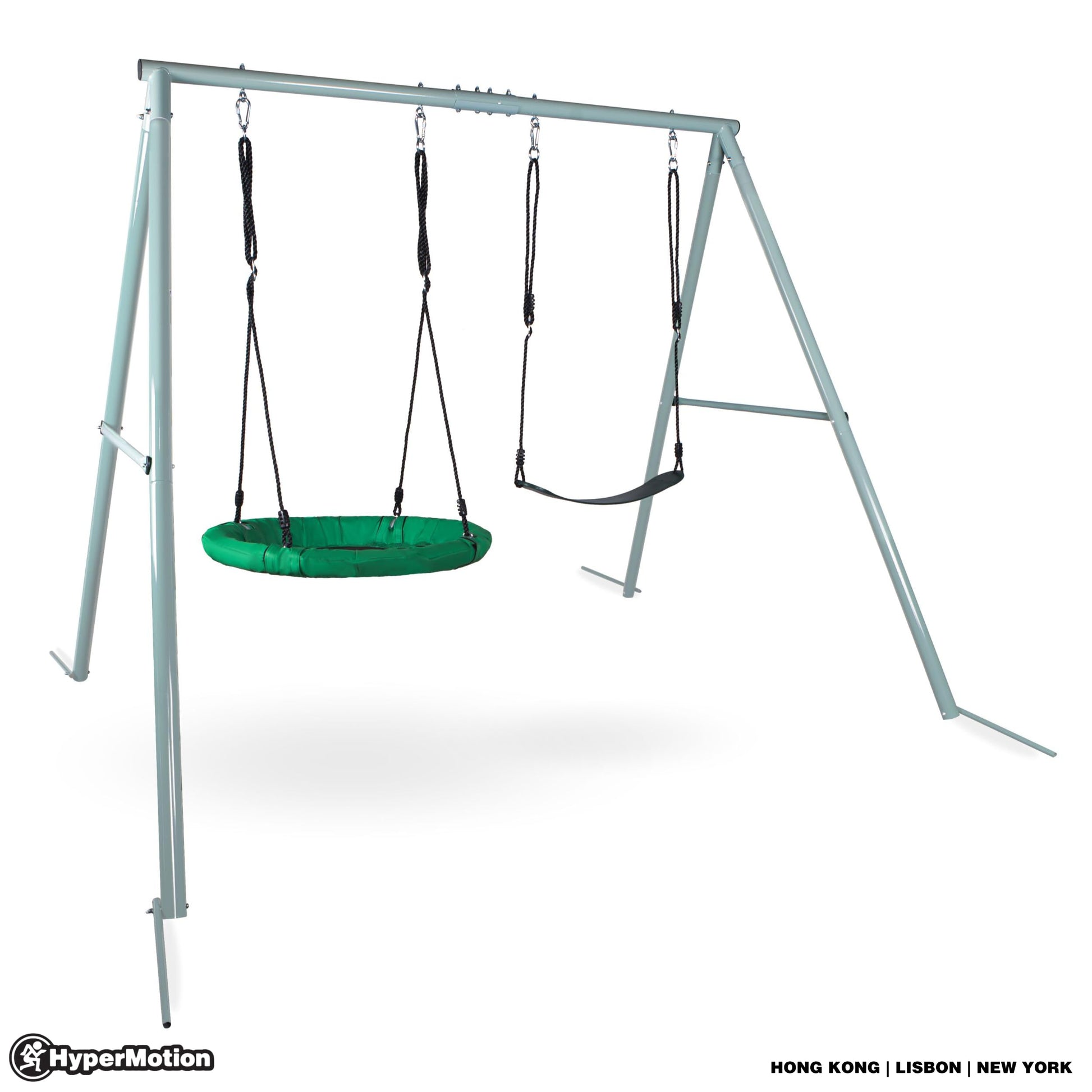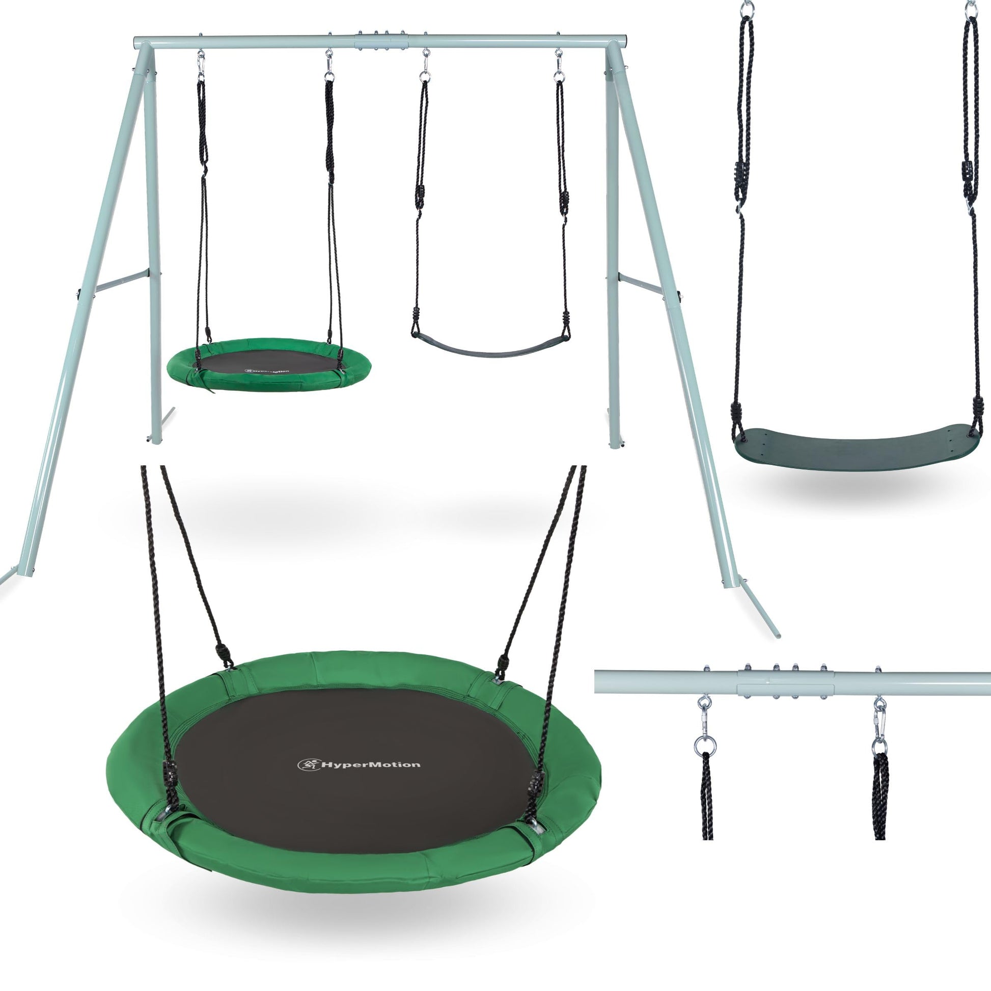 HyperMotion Garden Swing Set with Nest & Classic Seat - Sturdy A-Frame Design, 200kg Load Capacity - Weather-Resistant Steel Frame & Adjustable Ropes - Safe Outdoor Play Equipment for Kids & Parents