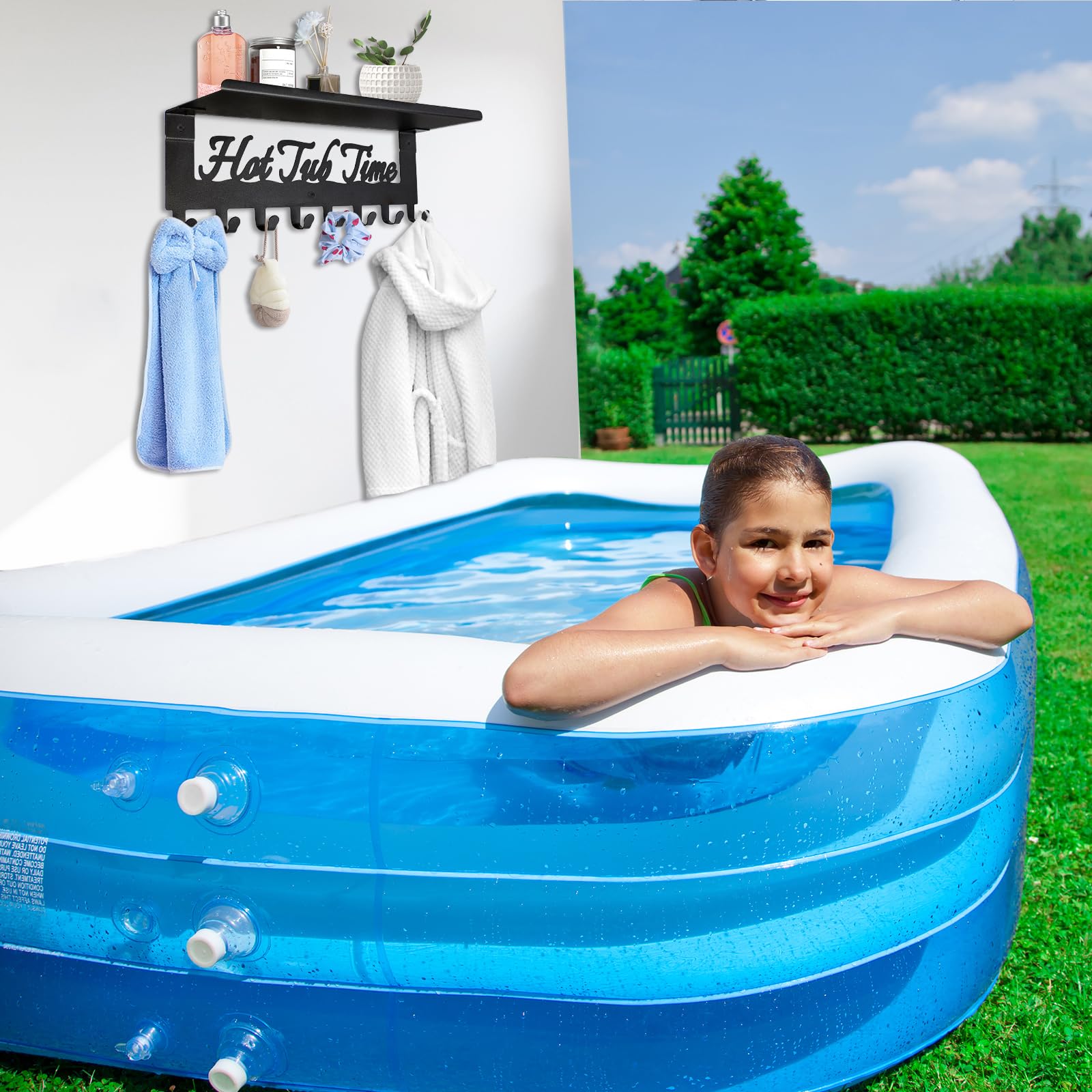IBosins Towel Rack for Hot Tub with Shelf Bathroom Towel Holder 8 Hooks Towel Hanger Wall Mounted for Robes, Clothes, Towels - Hot Tub Accessories Outdoor