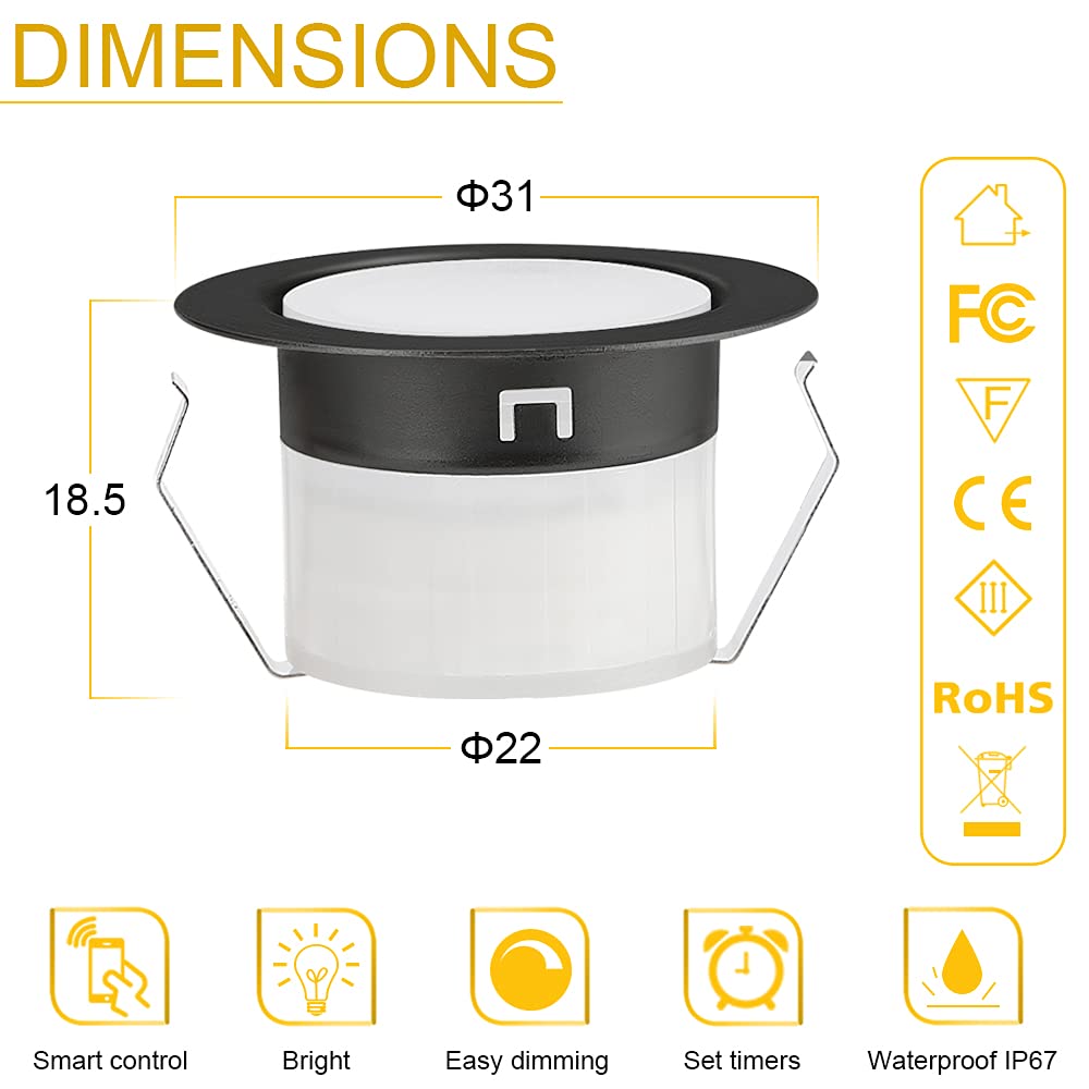 INDARUN RGBW WiFi Led Decking Lights Waterproof IP67 Ø31MM 12V - Led Plinth Light Kits for Terrace/Patio/Path/Wall/Garden/Decoration, 30 Packs