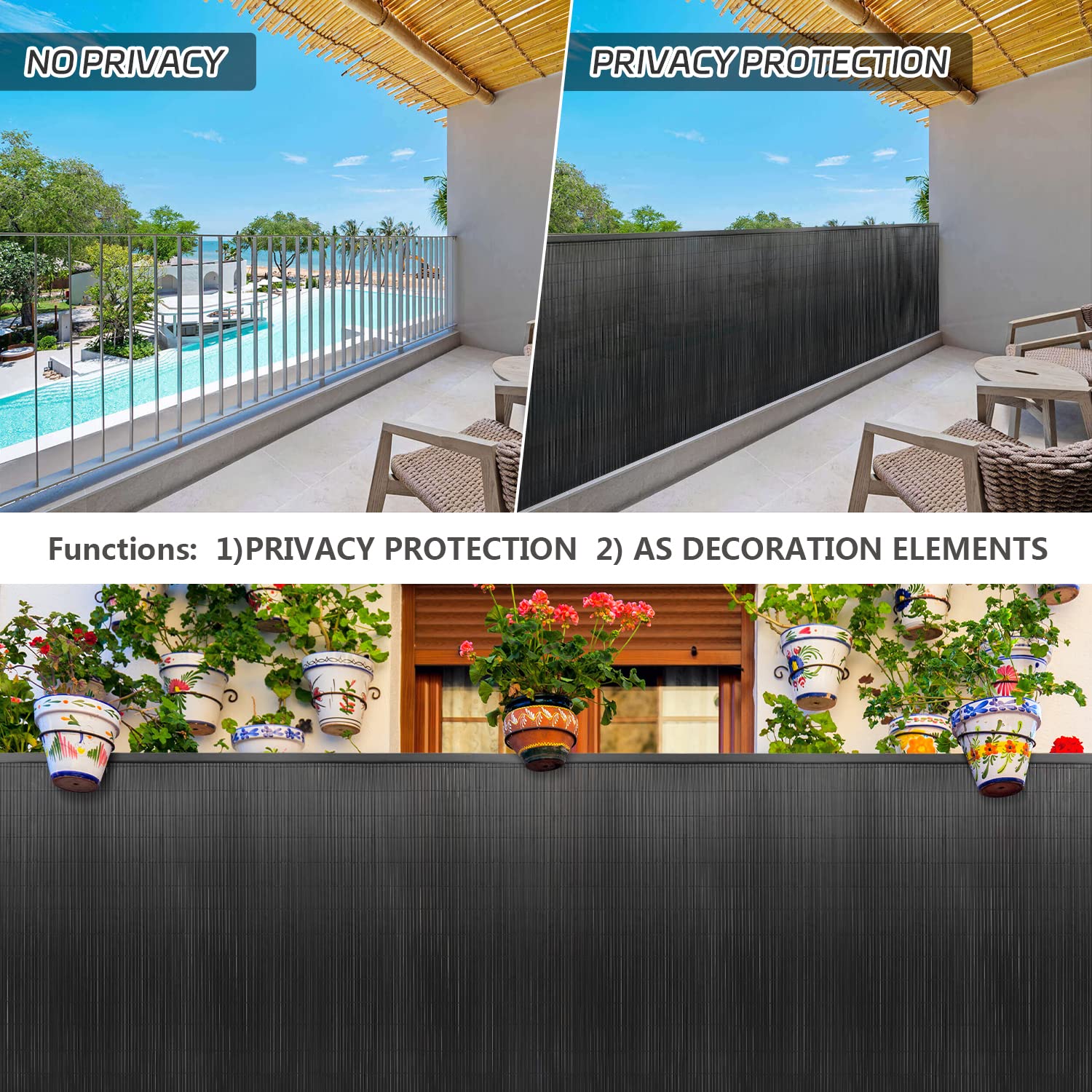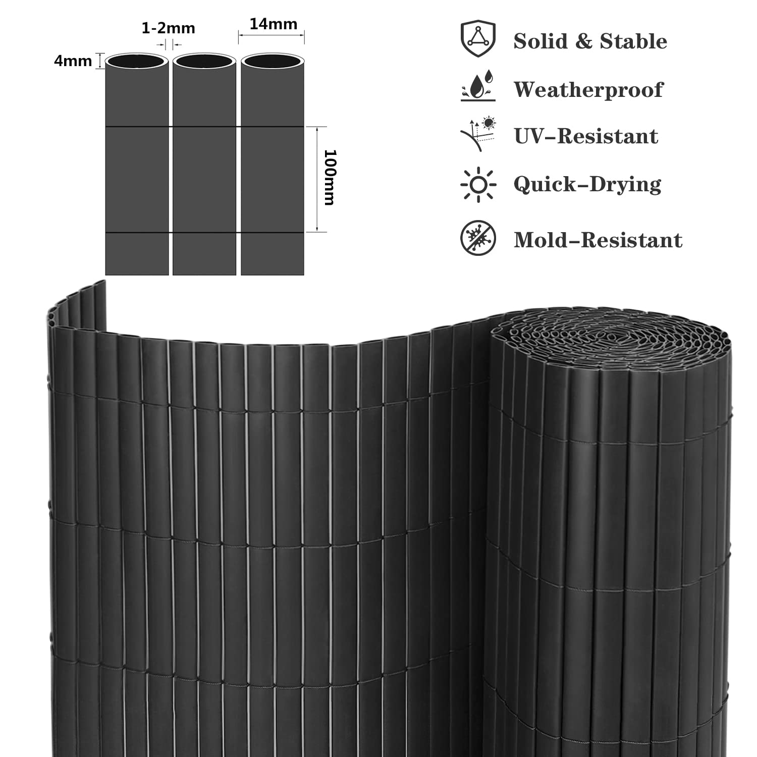 - High Quality Material : The garden screening is made of Hard PVC pipe added additional stability. Besides, the PVC material features weatherproof and uv-resistant, quick-drying and mold-resistant, which is a great alternative to conventional bamboo, reed and wicker mats, no risk of rotting and can be used outdoors for a long time.