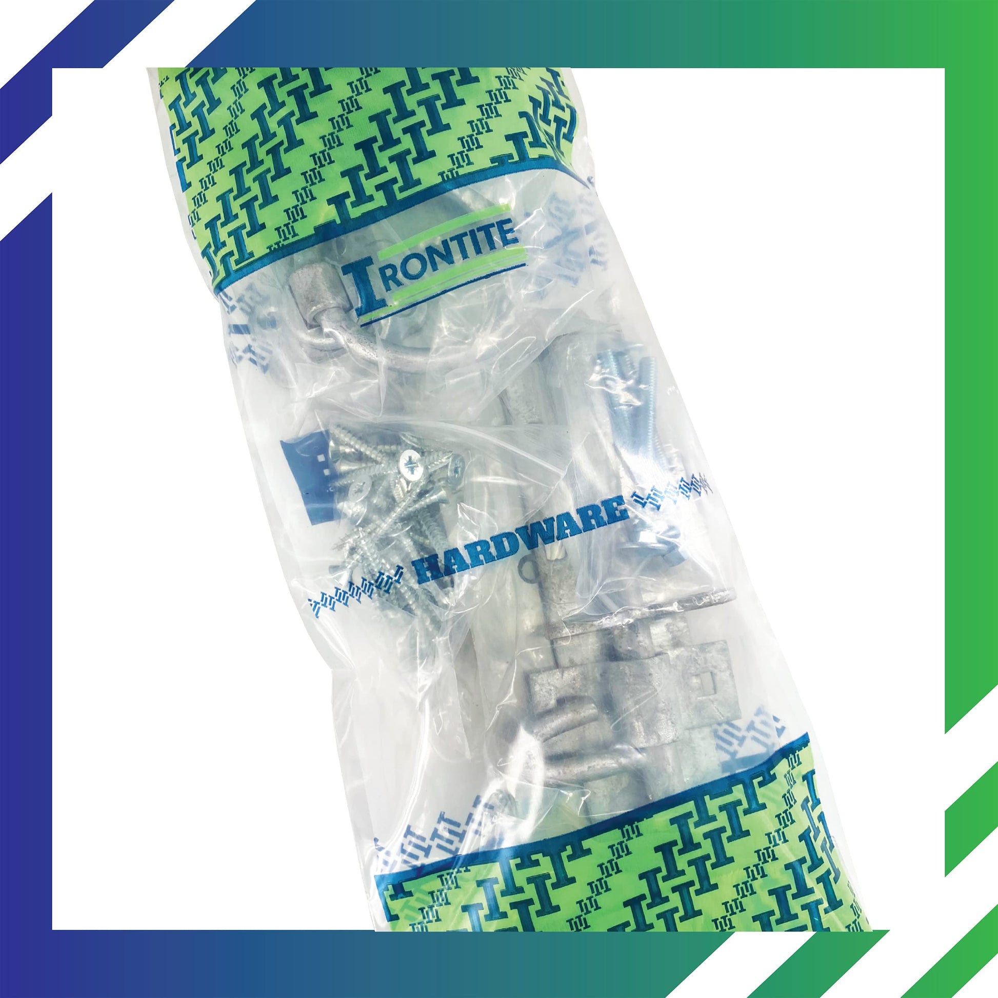 - PRODUCT: This IRONTITE gate fitting kit includes 450mm (18") Tee Hinges outdoor, which are heavy duty gate hinges, a ring gate latch for wooden gates, and a brenton padbolt creating a garden gate lock when used with a padlock.
