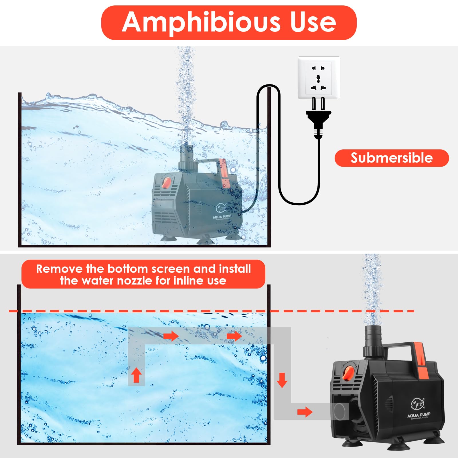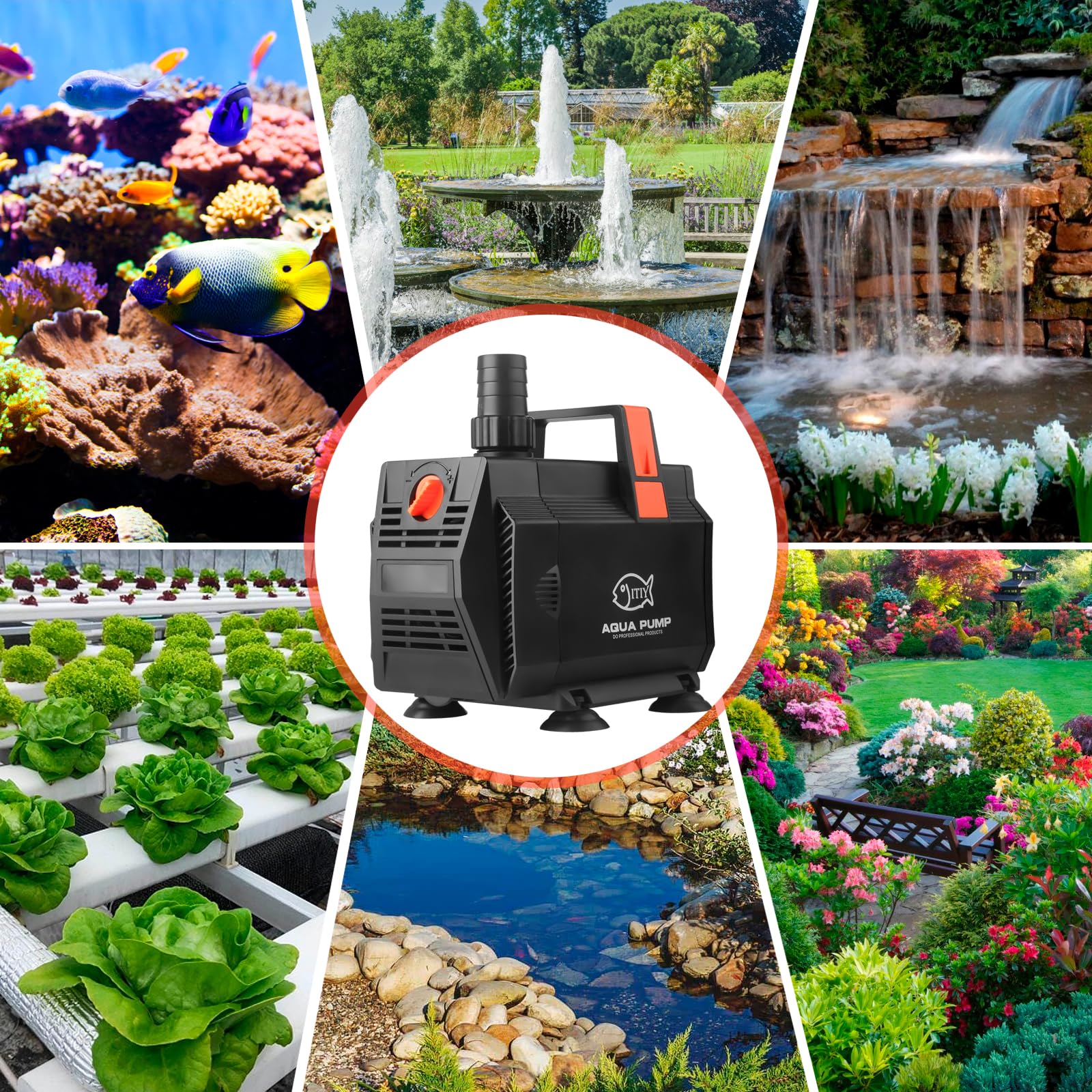 - š[Wide Application]: This aquarium pump is Energy Saving & High Efficiency & Super Muting. Designed for use in Ponds, Fountains, Waterfalls, Hydroponic systems, Irrigation systems and water features...