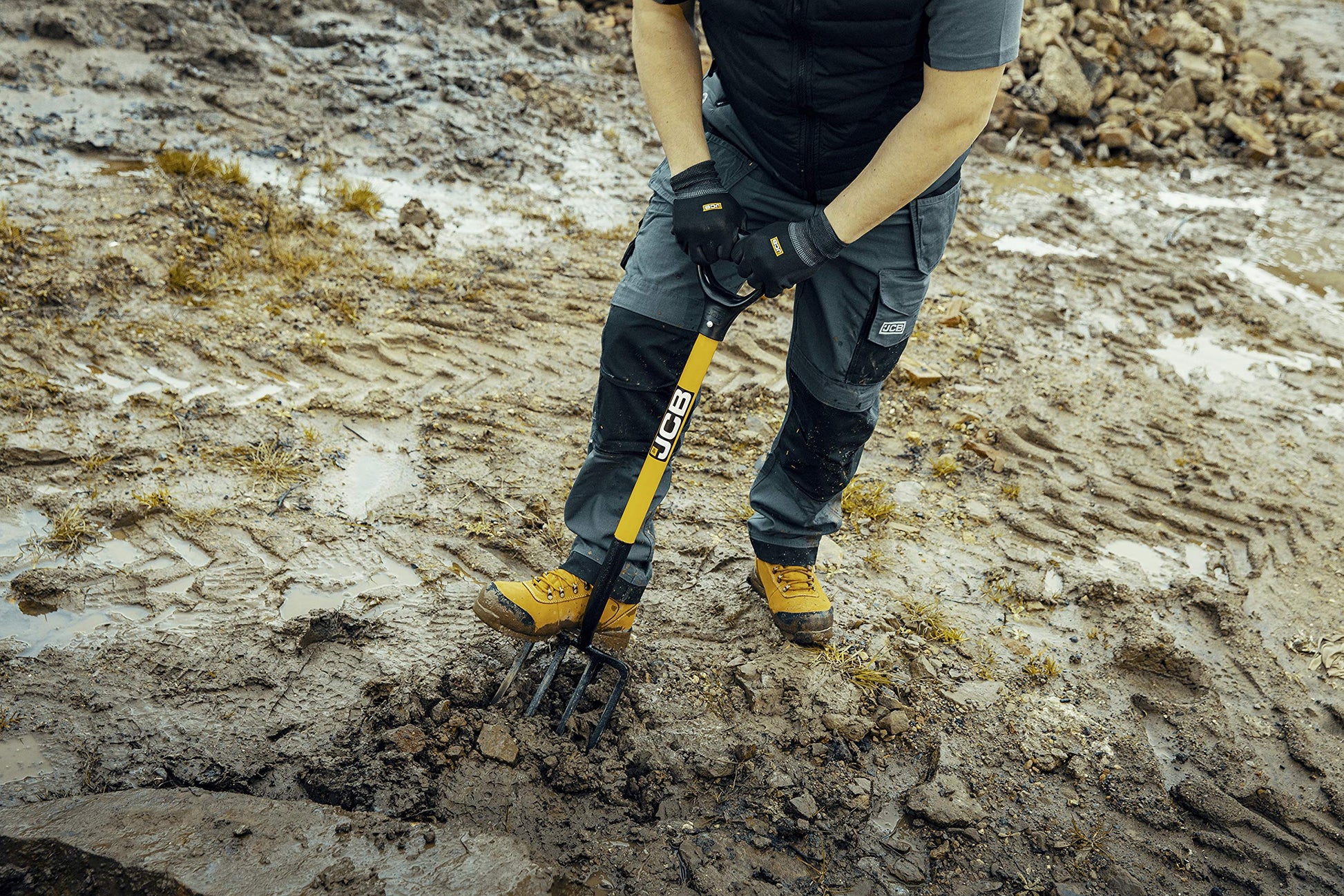 JCB 4 Prong Professional Garden Fork, 195 x 290mm Blade, Garden Digging Fork, Professional Metal Long Handle Heavy Duty Gardening Tool, Lifetime Warranty
