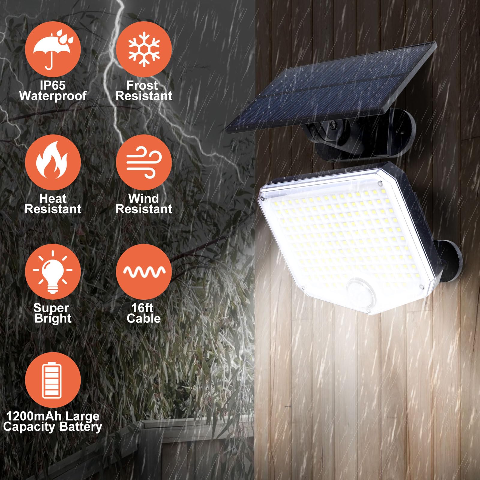 - 【IP65 Waterproof & Durable】Our Solar Lights with motion sensor is made of high quality ABS material, heat resistant, dustproof and has IP65 rating. Suitable for multiple scenes such as garden, porch, backyard, patio, garage, etc