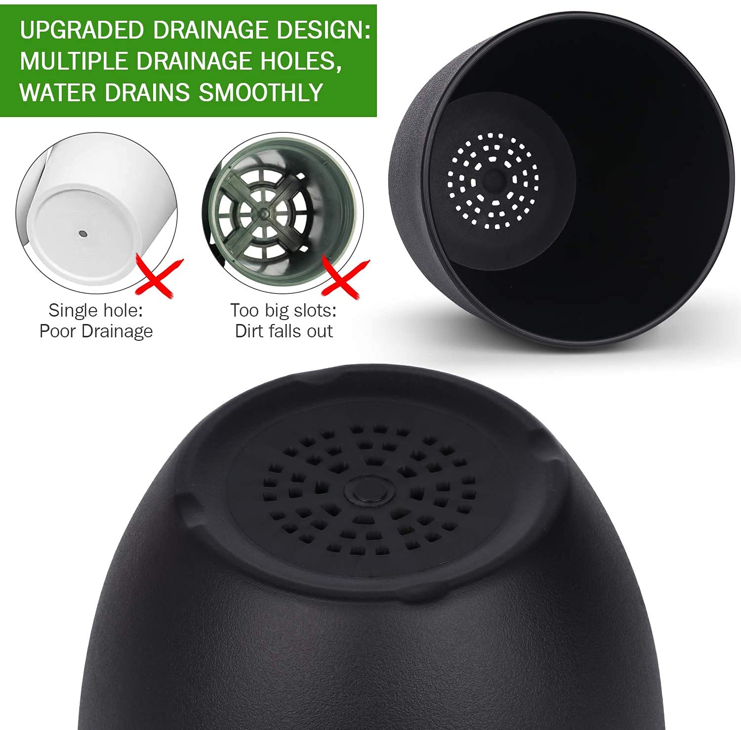 - [Drainage well] There are small drainage holes at the bottom, to keep the soil drained and ventilated. The independent drip tray makes the flower pots look neat and keeps soil moisture