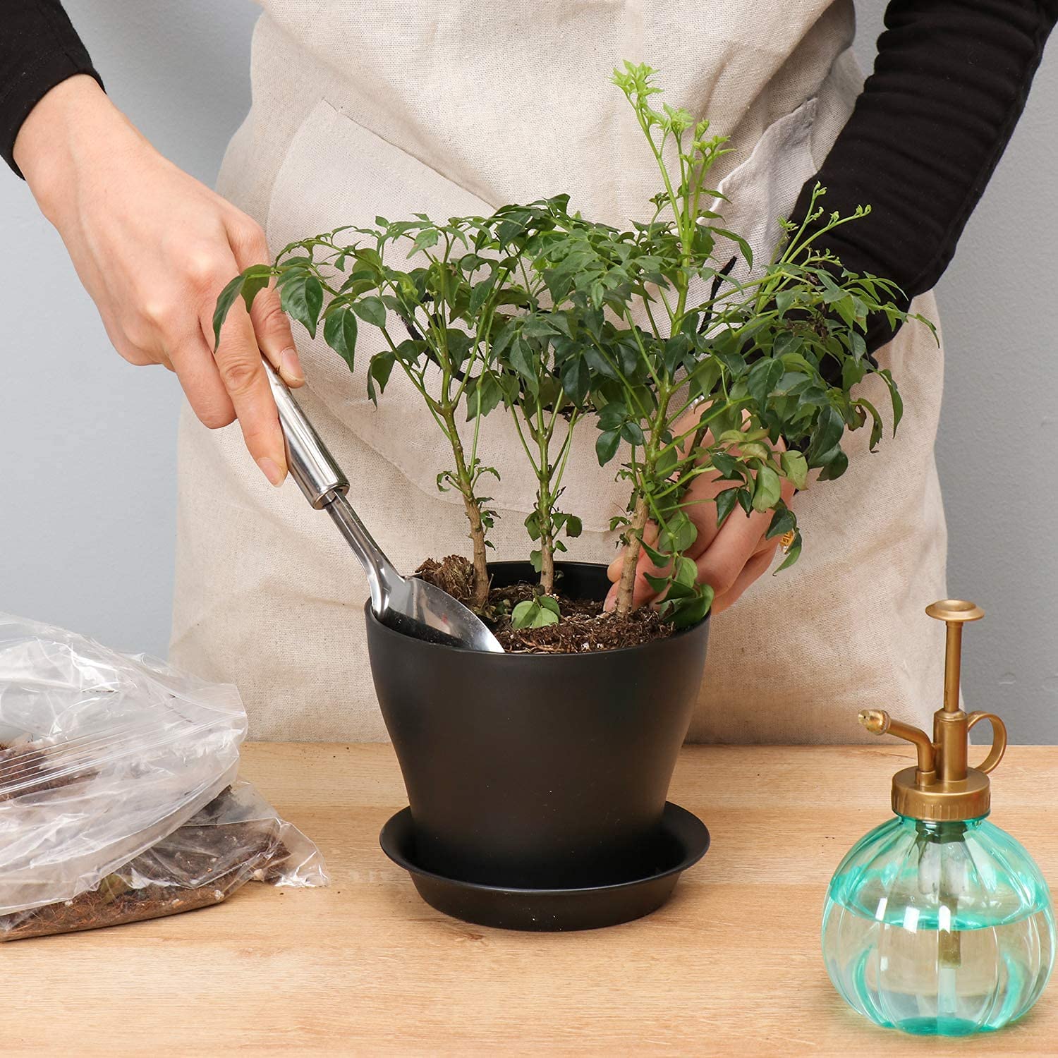 Details: KAHEIGN 8Pcs 14cm Black Plastic Plant Pots suitable for planting succulent plants, cacti, herbs and other potted plants, you can place it on the table, window or any place you like, perfect for garden lovers! And easy to blend well with plants to decorate your garden, balcony, office and room.