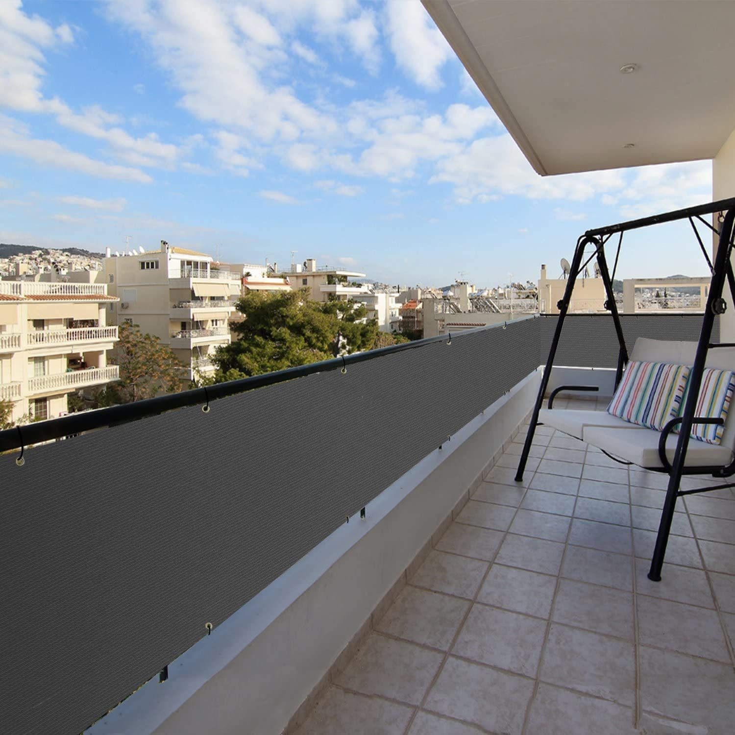 - [Easy to use] With a well-stitched hem and reinforced anti-rust grommet, easy to pass and secure, can thread the grommets with the included cable ties or ropes, to securely attach the screen to the balcony railing