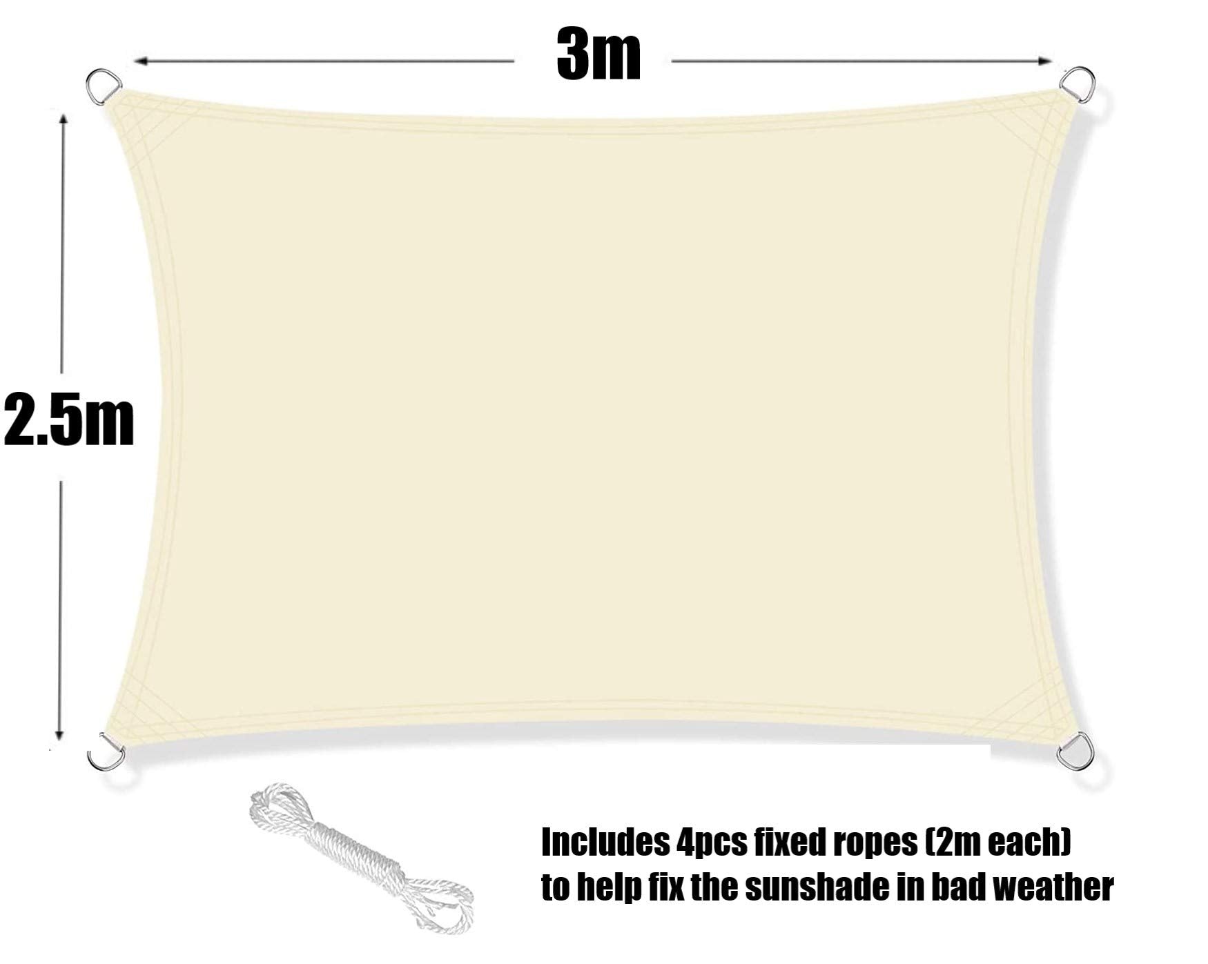 KAHEIGN 2.5m x 3m Sun Shade Sail suitable for use in backyards, swimming pools and ponds, pergola, sandboxes, driveways or other outdoor area decks, making the garden privacy safe, cool and wonderful!!