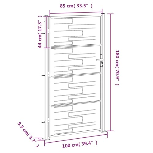 Keyroto Garden Gate 100 x 180 cm Stainless Steel Rustic Outdoor Garden Gate