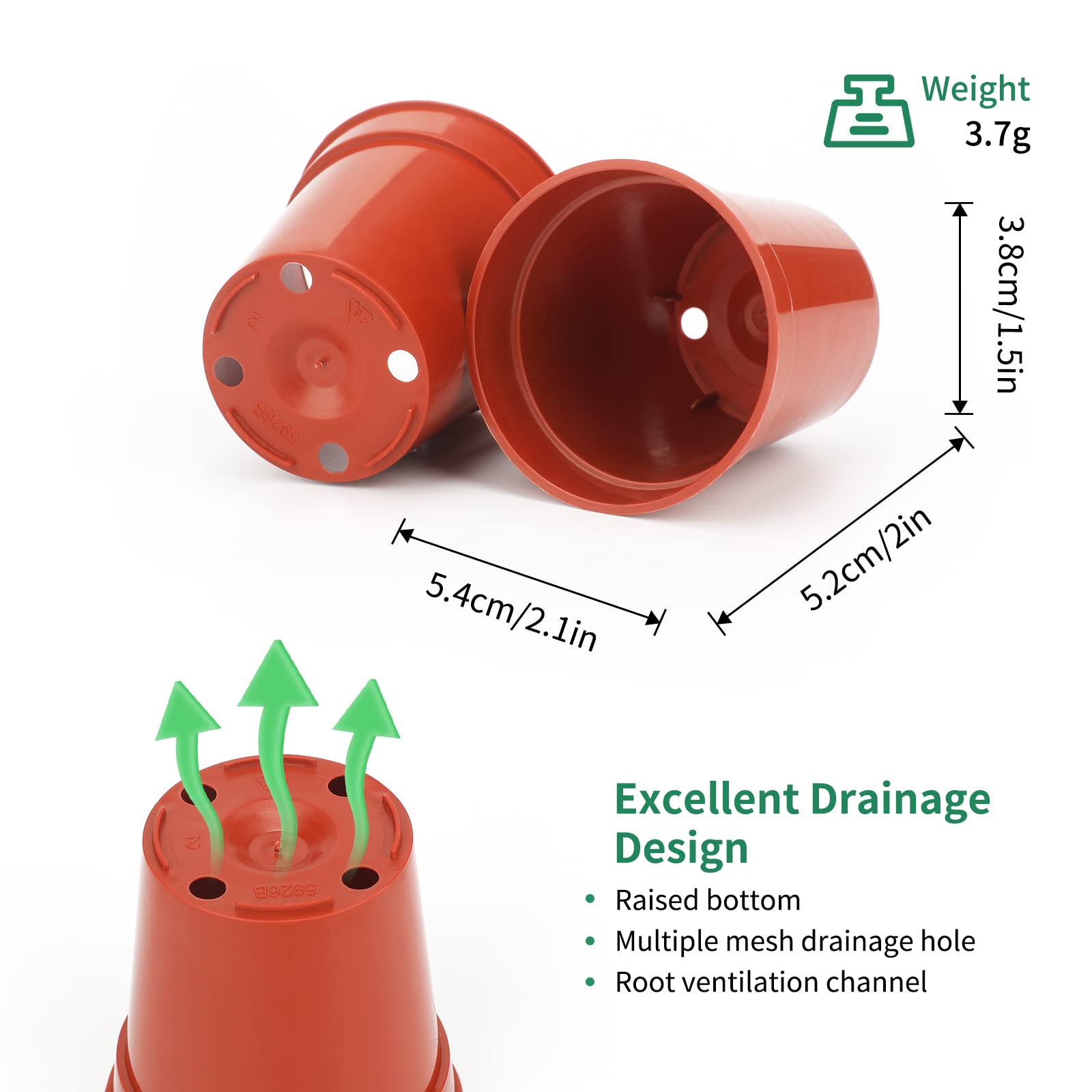 - 【Dimension and Qauntity】5.4cm/2.1" diameter at the top; Height:5.1cm/2"; 3.8cm/1.5" buttom diameter. Quantity: 50 Pcs mini plastic plant pots.