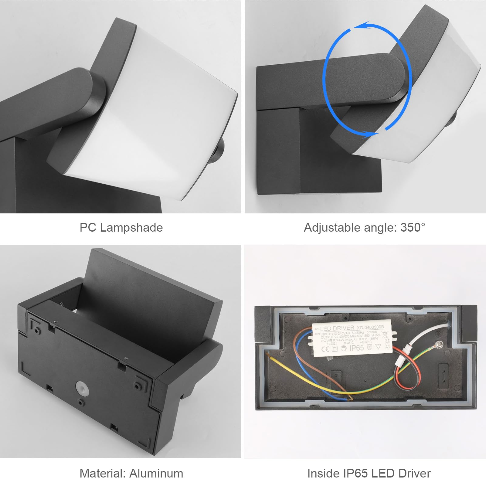 Klighten 24W LED Wall Light Outdoor Indoor Waterproof IP65 Adjustable Lamp Modern Outside Light Aluminum Wall Lighting for Entrance Garden Balcony, Dark Gray, Warm White 2700K-3000K