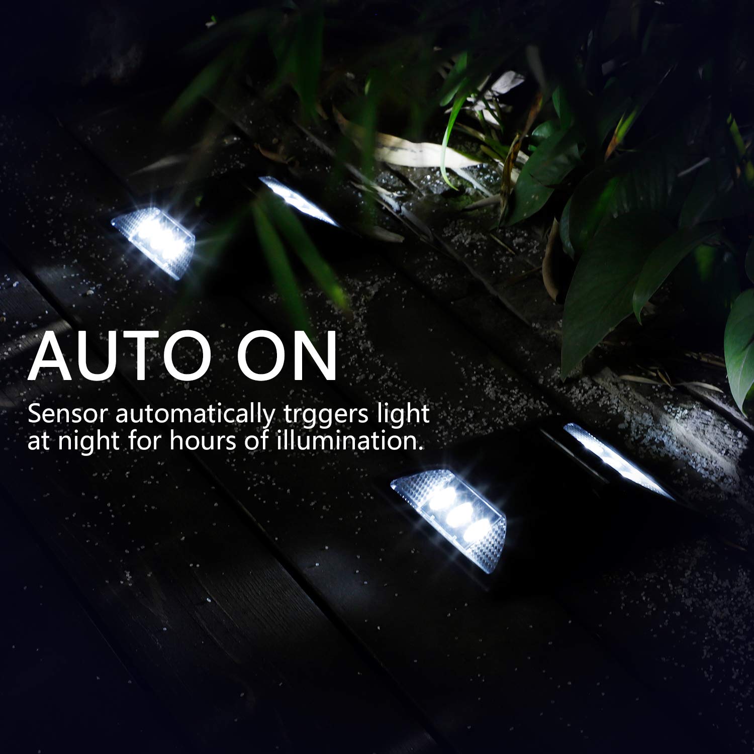 - Solar Powered: High efficiency and environmental protection solar panels,automatically recharges during the day and glows when night falls.Each light has 6 premium quality leds which gives out a visible super bright and steady light for more than 875 yards.
