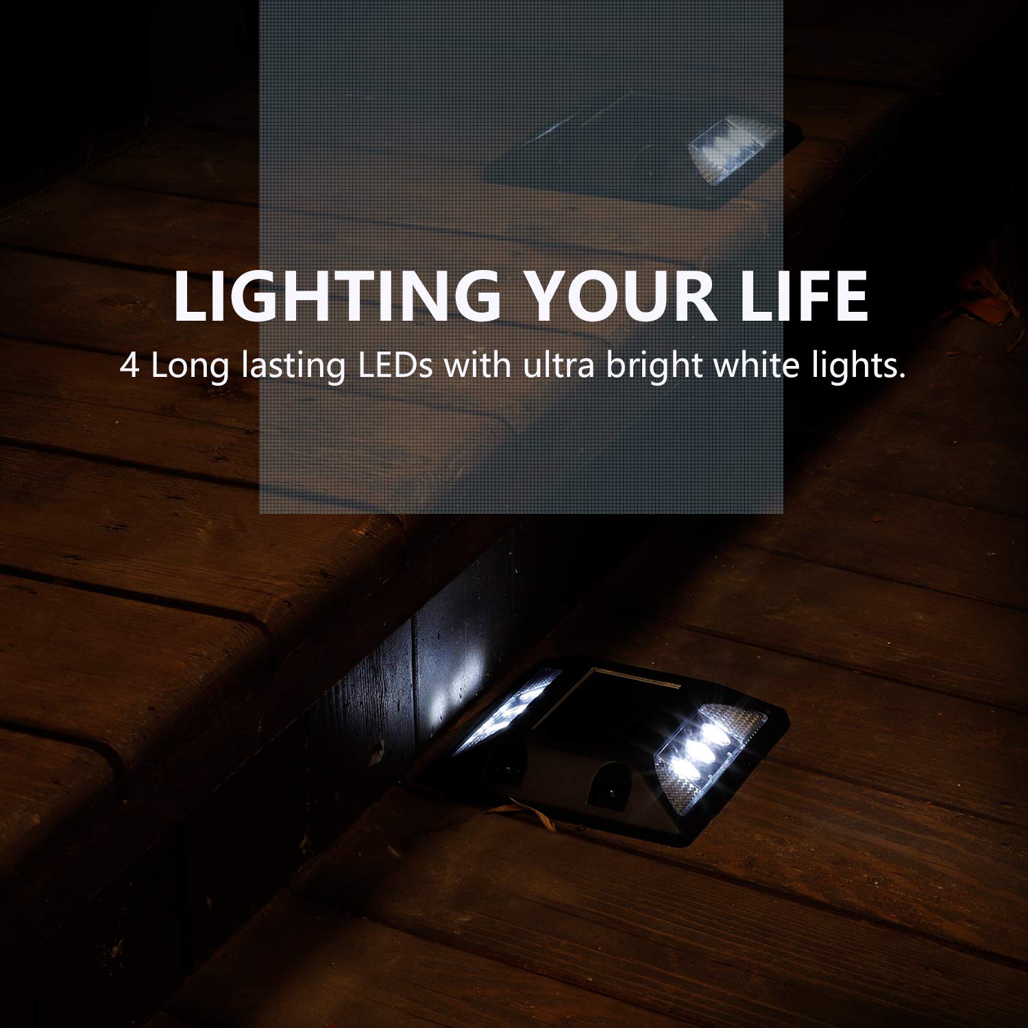 KMASHI Solar Deck Lights Outdoor, Driveway Dock LED Lights,Solar Powered Waterproof Road Markers for Step Sidewalk Stair Garden Ground Pathway Yard (4pack