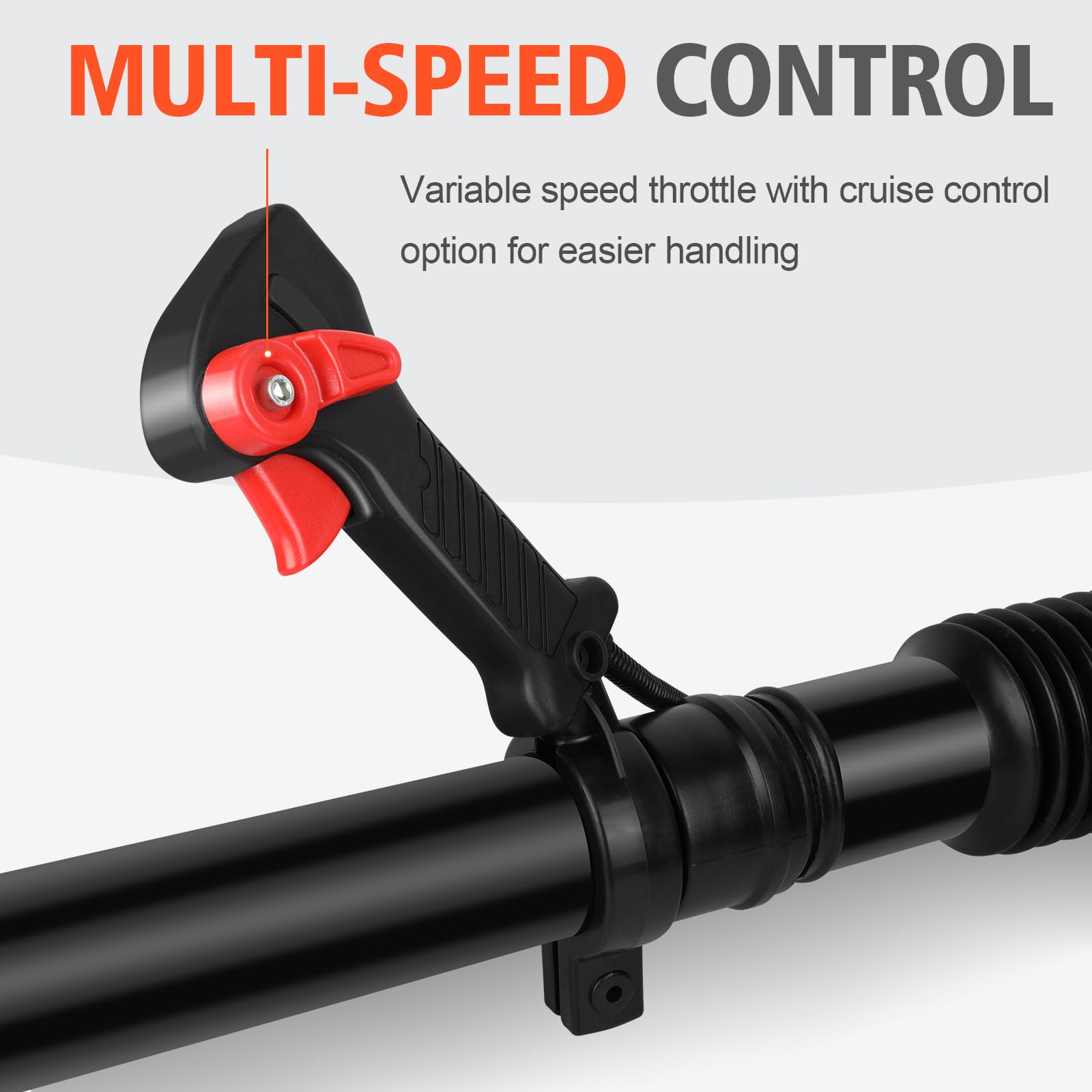 - Gas Blower with Speed and Blowing Direction Control Function: Press the trigger to control the blowing speed, the turban fan can be adjusted to 7000rpm. You can control the cruise handle to maintain a steady blow speed and reduce the pressure on your arms