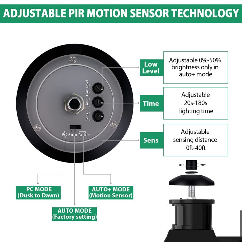 - ๐๐๐ญ๐ญ๐๐๐ฅ๐ ๐๐๐ ๐๐ฎ๐ญ๐๐จ๐จ๐ซ ๐๐จ๐ญ๐ข๐จ๐ง ๐๐๐ง๐ฌ๐จ๐ซ ๐๐ข๐ ๐ก๐ญ - Our Dusk to Dawn Porch Light is an innovative technology developed over 6 years with 3 lighting modes(PC, Auto, Auto-) to choose from. You can set the sensor distance of the motion sensor (0-40ft), illumination time (20s-180s), and dim light brightness 0%-50%(only in Auto- mode). This innovative technology can meet a wide range of needs and improve user satisfaction, making it easier to use.