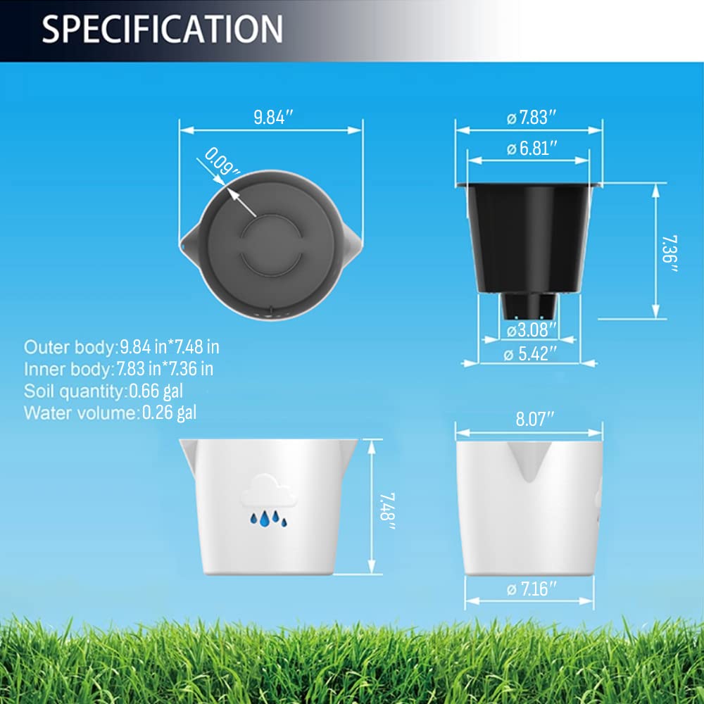 - ☘️ Self Watering Pots: Self watering plant pot with drainage holes stores the water and feeds your plant for days, so you don’t have to water your plant frequently. The auto watering planter helps you watering plants while on vacation or when you just leave your home or office for a couple of days. It has a self watering mechanism draining gradually. The double-layer design allows excess water to be stored at the bottom of this cloud planter while keeping the water separated from the roots.