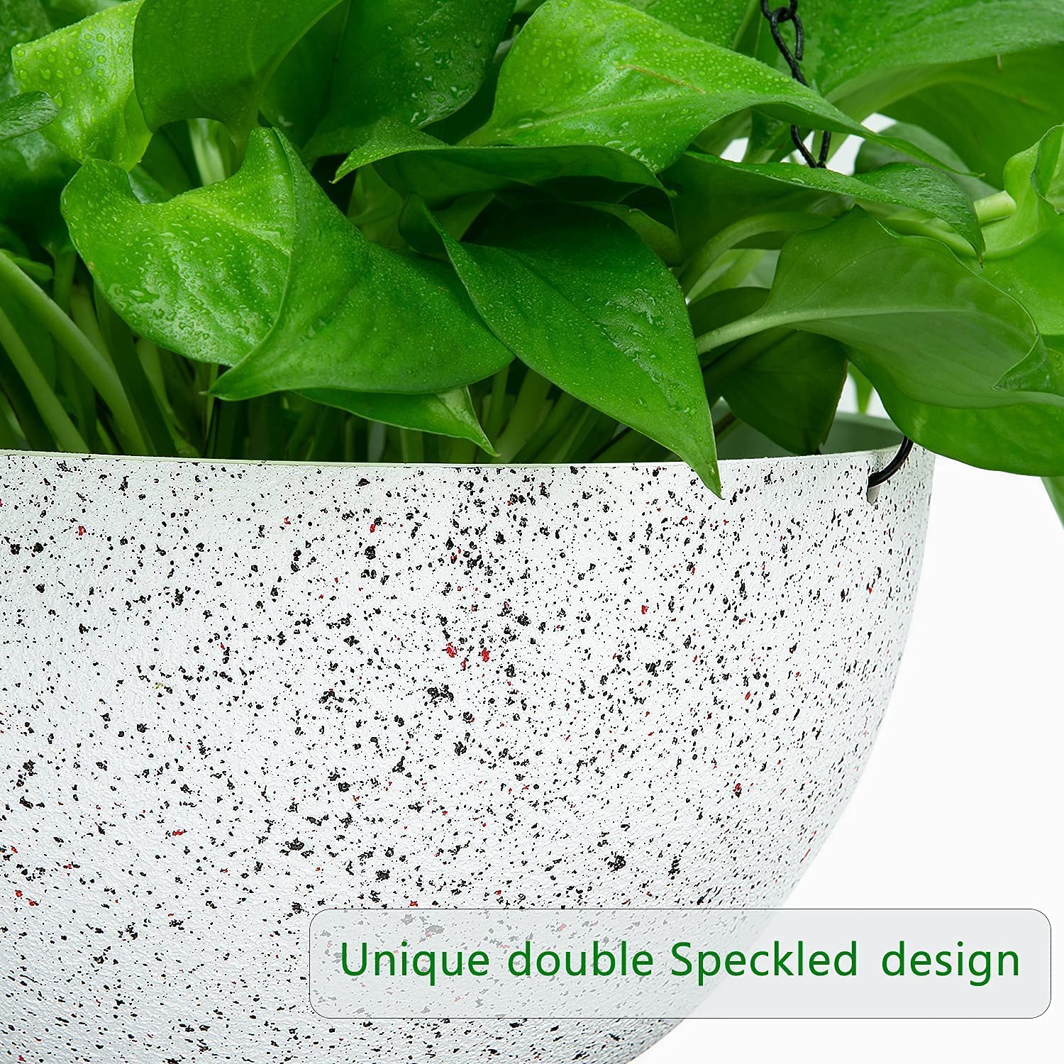 Details: LATERN 2Pcs 25cm Speckled White Hanging Flower Pots Suitable for planting plants such as ivy, herb, fern, camptotheca, succulents, flowers or other plants, perfect to decorate kitchen, terrace, porch, lawn, garden, deck, balcony, sun room, high and low ceilings others!