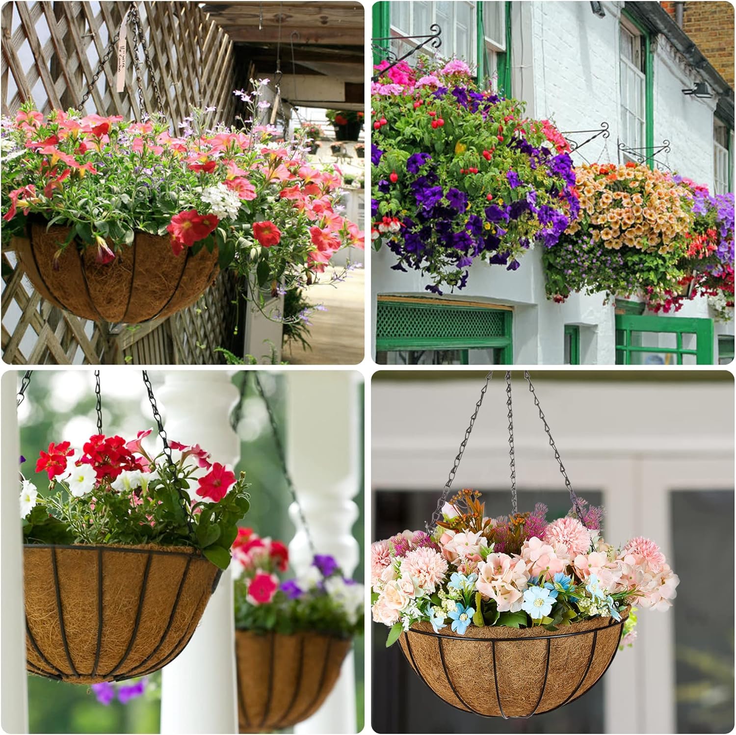 - [Easy to use] Each basket with black three-strand chain, can easily hang it wherever you want, stable and not easy to shake; The coco fiber liners is pressed by natural latex bonding, not easy to tear and loose