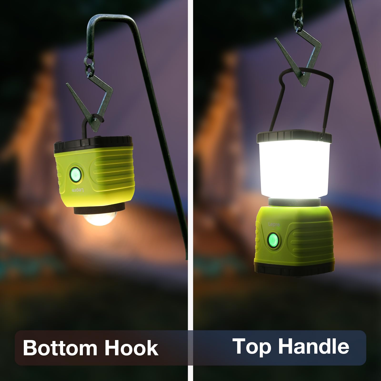 - Hanging Light: With a hook on the base and a metal handle on the top, you can hang the tent lights to light up a larger area. Besides, the case of the rechargeable lantern can be unscrewed to get brighter lighting.