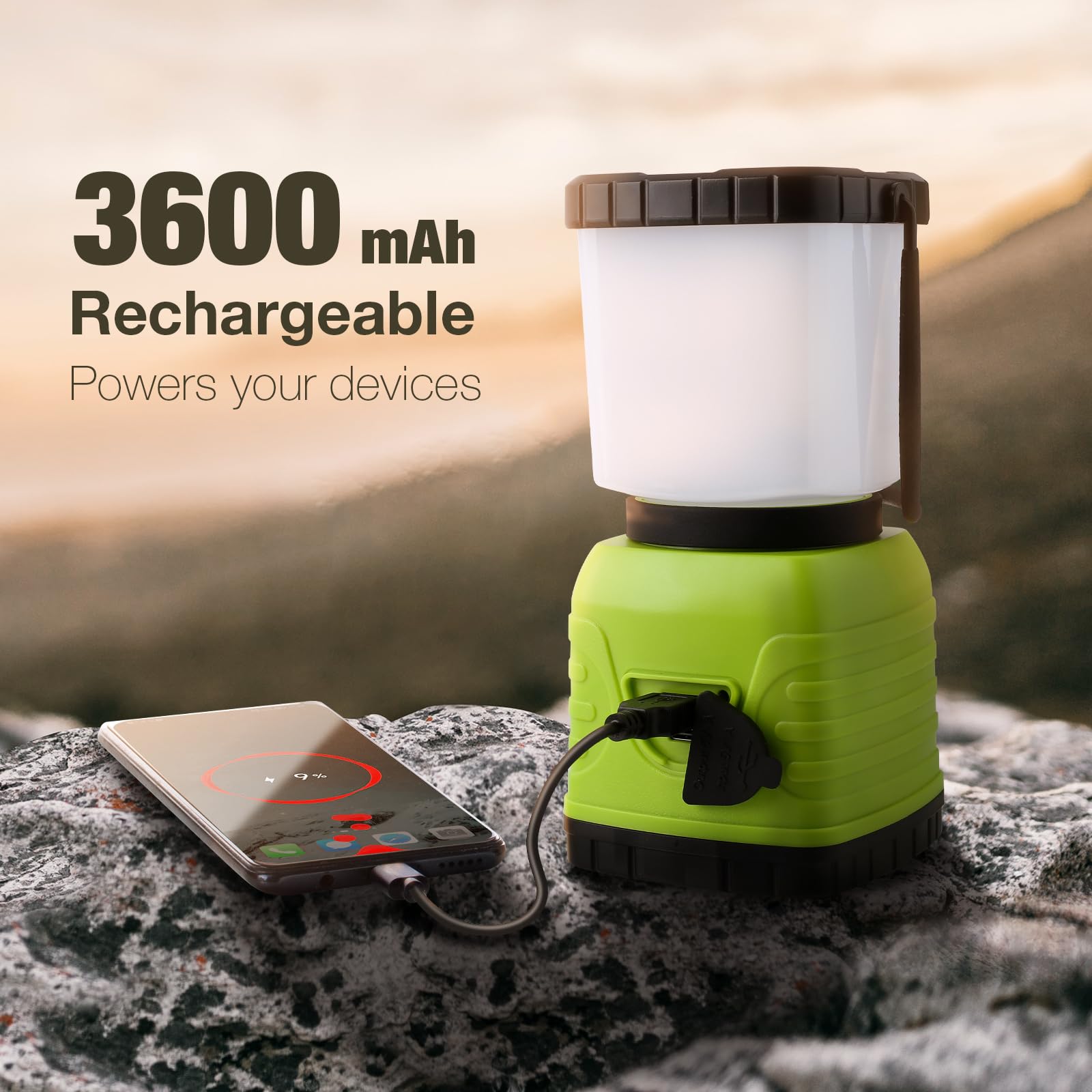 - USB Rechargeable: Built-in 3600mAh rechargeable battery allows charging the camping lights via a USB cable and don’t need to spend money on batteries. It can also work as a power bank to charge your phone or laptop temporarily.