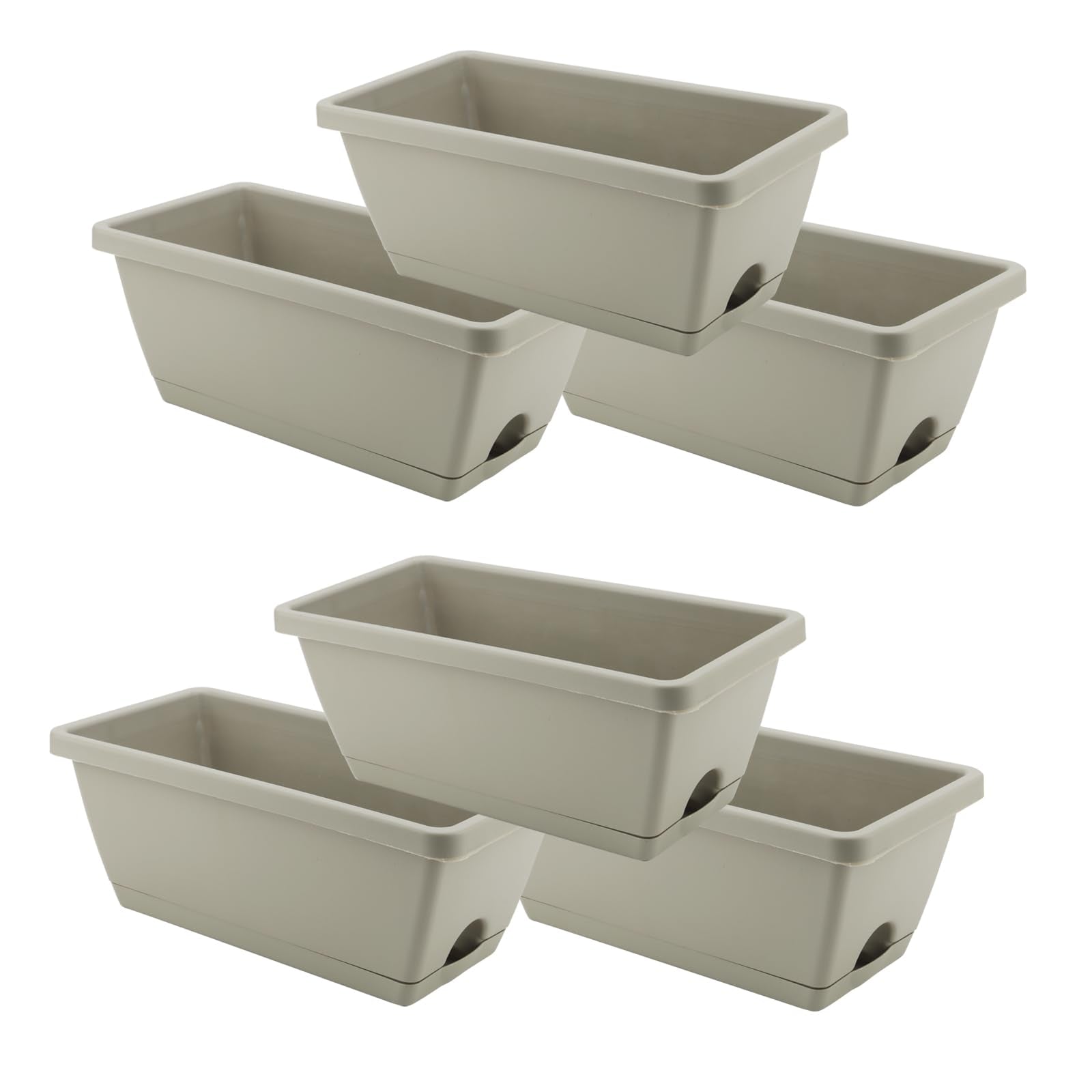 LEXININ 6 PCS 35 x 17 x 14cm Grey Rectangular Window Planter, Plastic Window Boxes with Trays, Flower Box Planter for Garden Patio Home