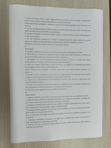 - 【Note and Care】We recommend that you use a parasol stand/base (need to be purchased separately) to fix your parasol or place it on your patio table. To extend the life of your parasol, close and store it at night or during extreme weather conditions.