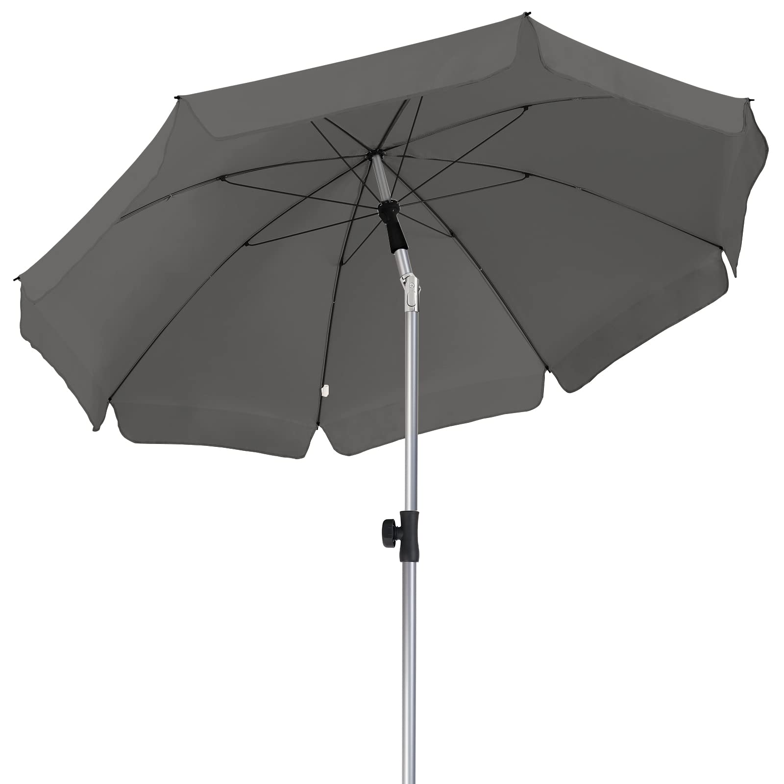 LIFERUN 2 X 2M Parasol, Market Umbrella, Round Garden Umbrella, 8 Steel Braces, Base Not Included, Patio Umbrella, Sun Protection UV 50- for Garden, Balcony and Patio, Grey