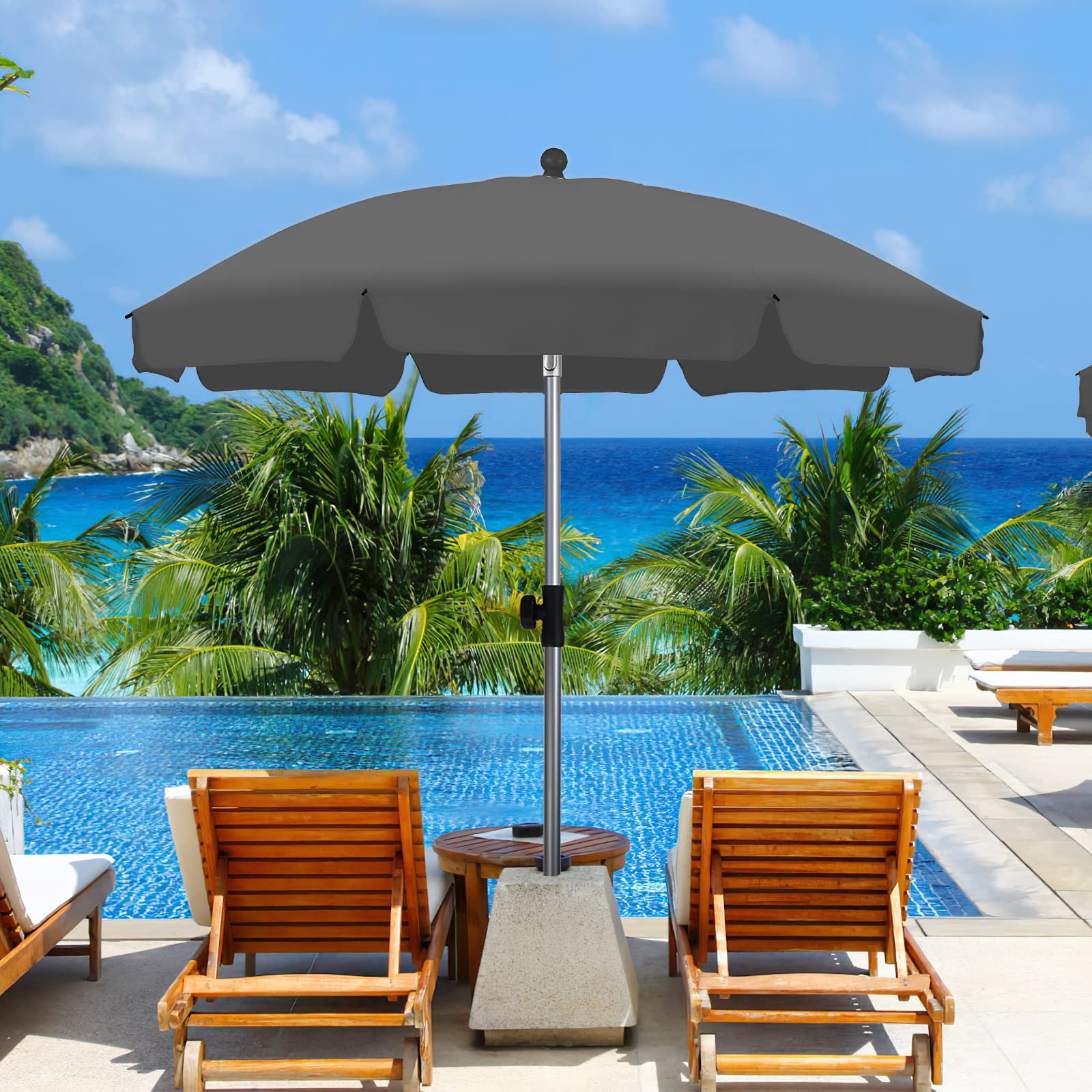 - 【100% Thick Polyester Fabric】The umbrella is made of 100% polyester, very thick, well-made, waterproof, UV resistant, durable and easy to clean. The umbrella has a curtain on the edge, which not only looks beautiful but also has a good sun protection effect. The unique and beautiful design makes it not only a fantastic parasol, but also an excellent decorative element for gardens, balconies and terraces.