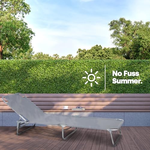 LIVIVO Foldable Sun Lounger with Adjustable Back and Leg Rests – Relax in Comfort and Style – Folding Lightweight Frame (Grey)