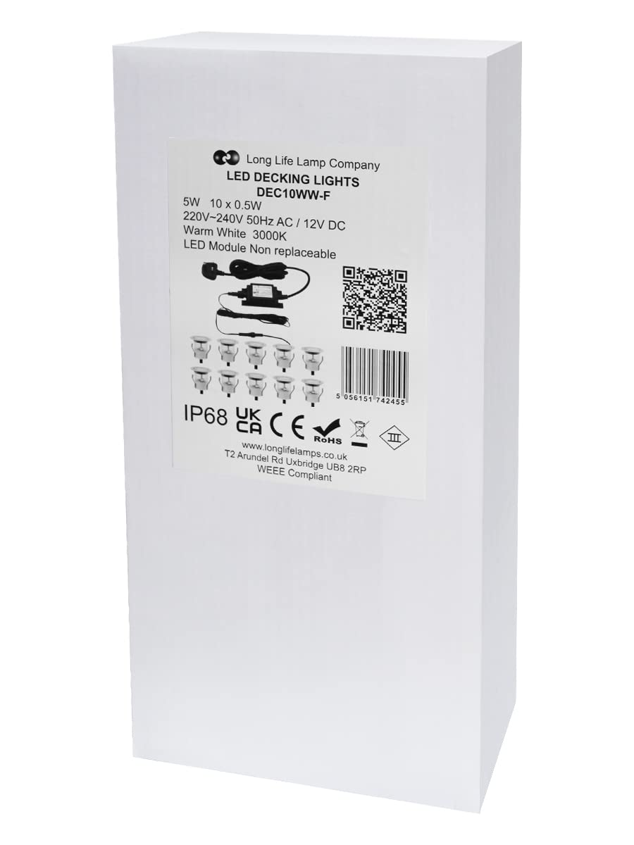 Long Life Lamp Company IP68 Outdoor LED Decking Lights 30mm Round Warm White 3000k 10 Kit DEC10WW