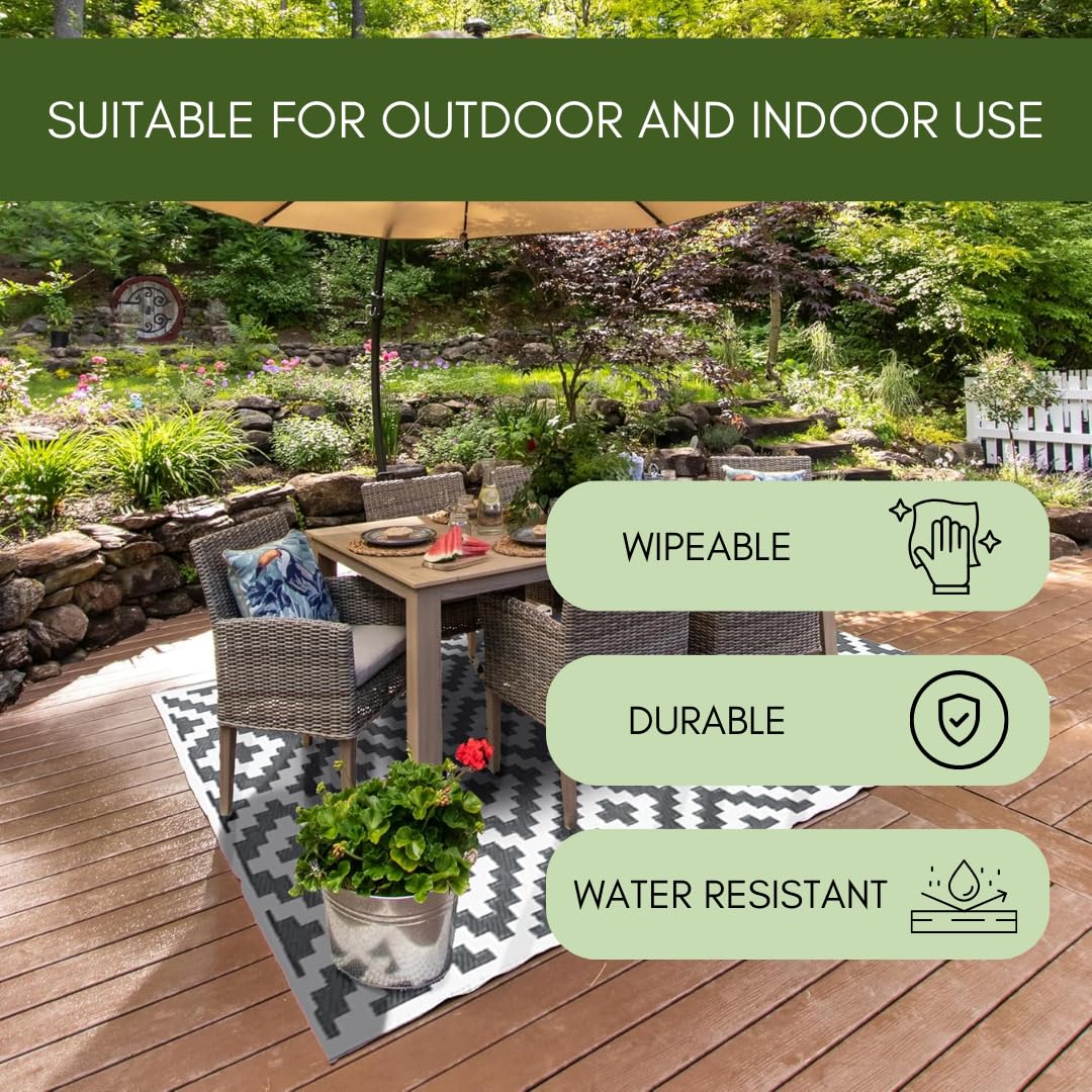 Marco Paul Large Outdoor Garden Rug Reversible Recycled Plastic Camping and Picnic Rugs, Patio, Decking Stain And Water Resistant Alfresco Grey Aztec Mat 150 x 210cm