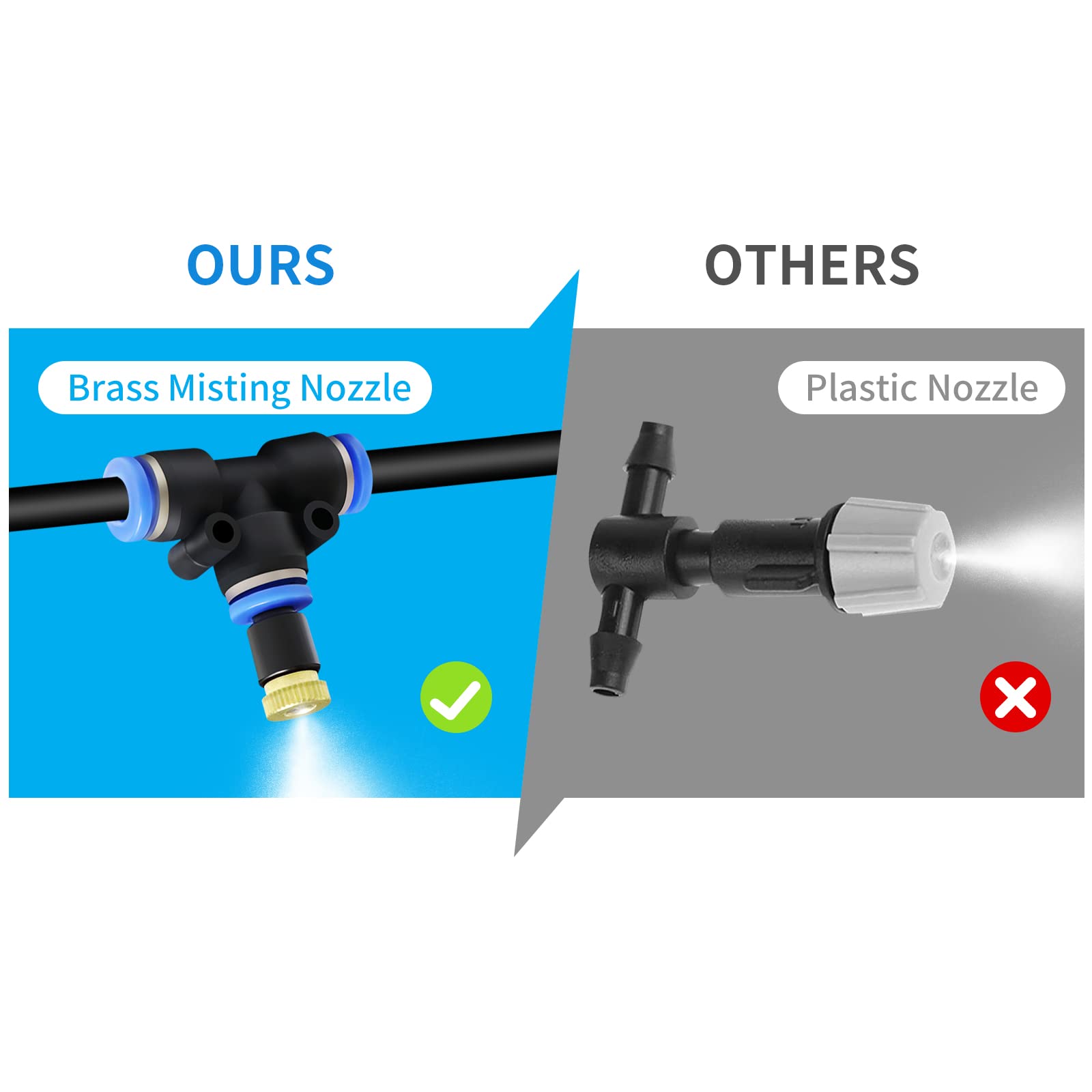 - 【Large scope】Fog irrigation covers a larger area than conventional irrigation, effectively increases humidity, reduces dust particles and produces an even amount of water for gardens, vegetable fields, Landscape and greenhouse irrigation systems and is ideal for gardens and vegetable fields and landscaping And the greenhouse provides continuous mist water.