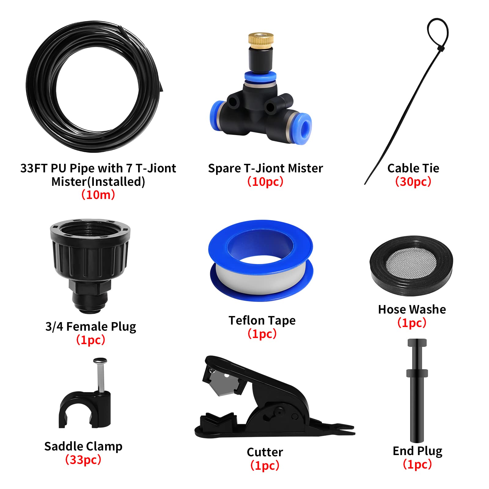 - 【Outdoor Entertainment】The soft fog irrigation system can be used in pool, fan, sunshade, paddling pool, sun sails, swimming pools and animal cages for outdoor water play, not only funny, but also cooling.