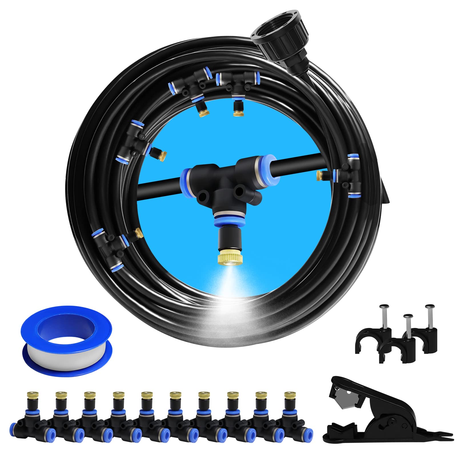 Mdlufee Spray Mist Cooling Irrigation System,66FT/20M Misting System,20 Brass Mist Nozzles,Water Mist Hose for Backyard,Garden,Greenhouse,Umbrella
