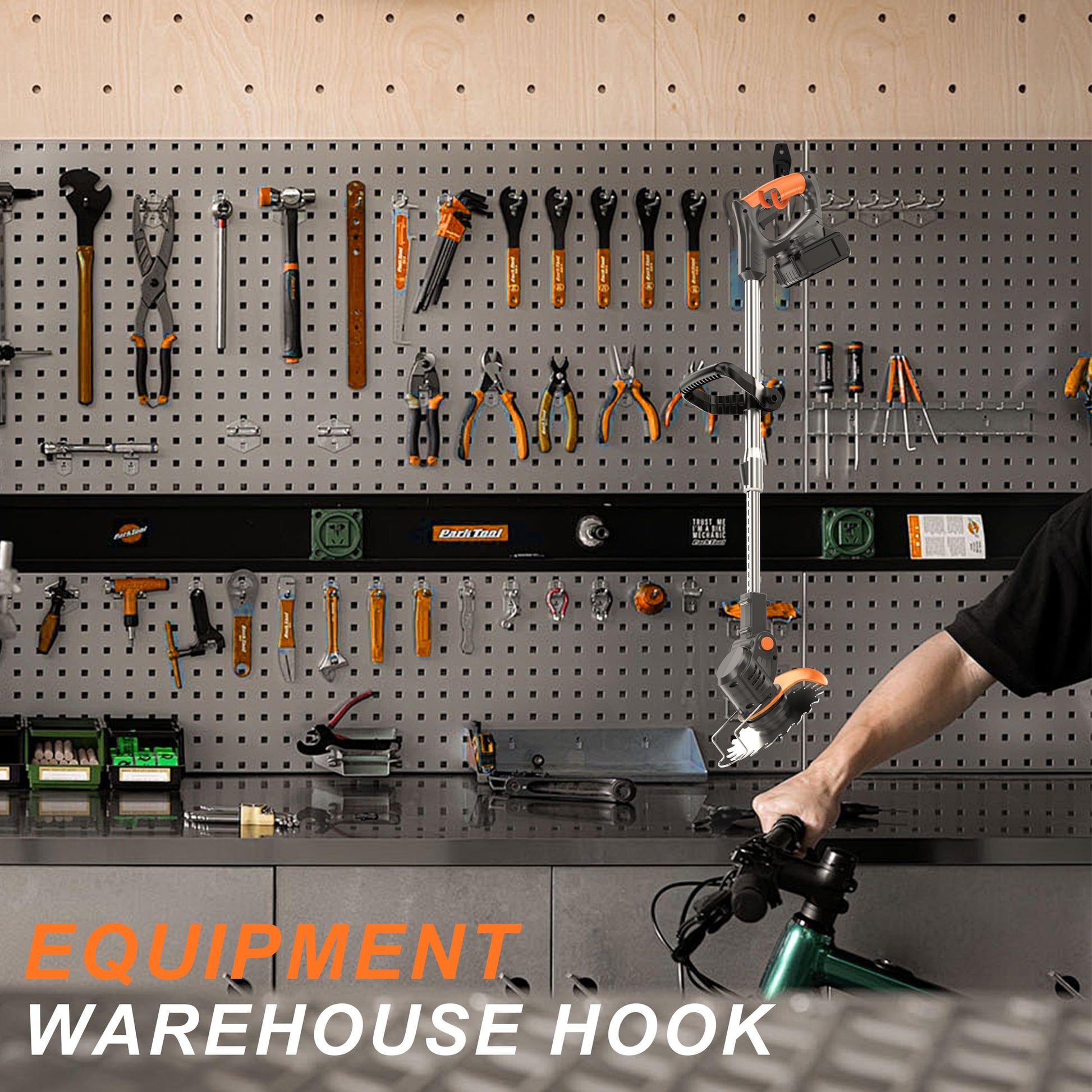 - [Convenient Storage Hook] We’ve included a specially designed storage hook for your convenience. When not in use, simply hang your grass trimmer securely on the hook, keeping your workspace organized and ensuring the trimmer is always within easy reach. Perfect for warehouses or garage storage !