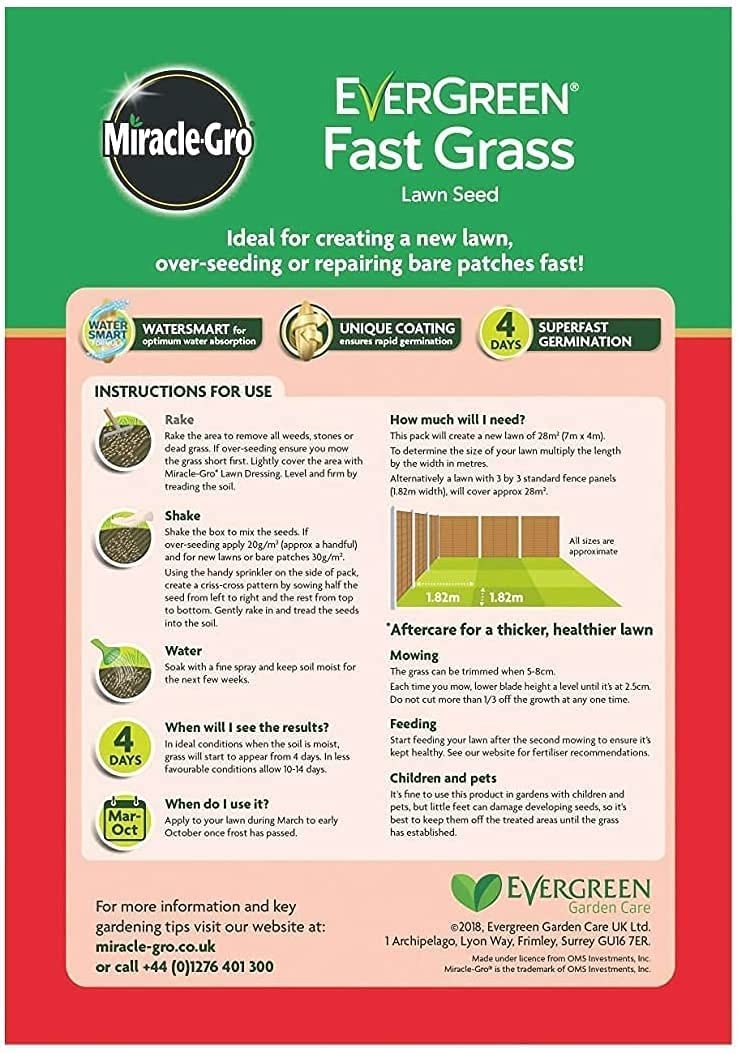 Miracle GRO Evergreen Fast Grass Lawn Seed 840g with a Thank You Sticker - Superfast Germination - Child and Pet Friendly
