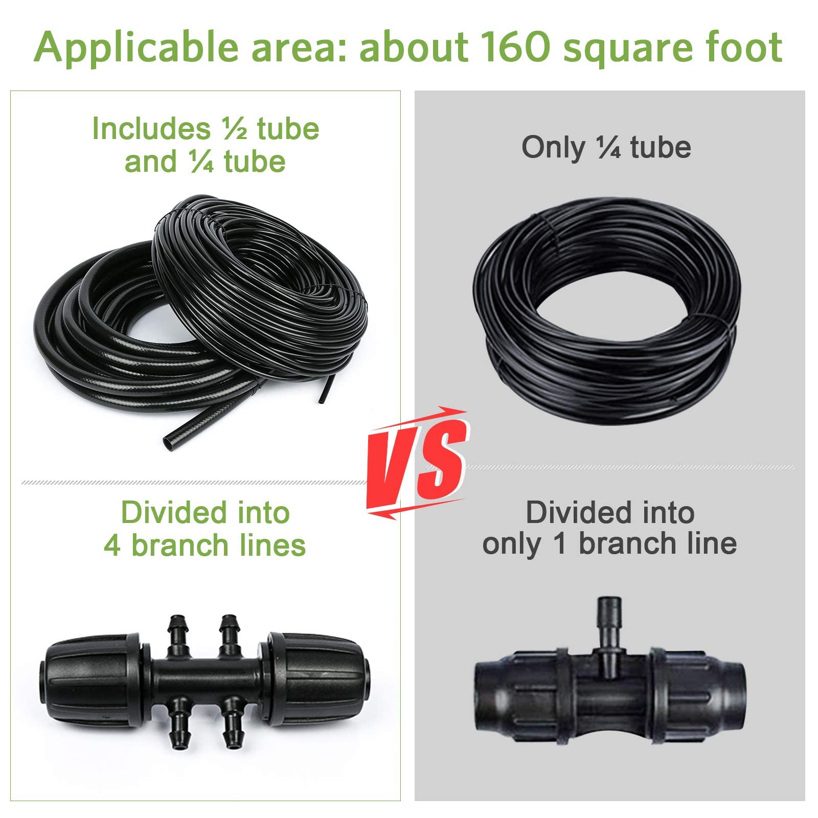 - š§ćEfficient Watering SolutionćExperience the convenience of watering your plants all at once with our micro drip irrigation kit, suitable for an area of 160 square feet. The kit includes 200FT - 26FT irrigation tubing, making it easy to water all your plants with just one installation. Say goodbye to the hassle of manually watering each plant!