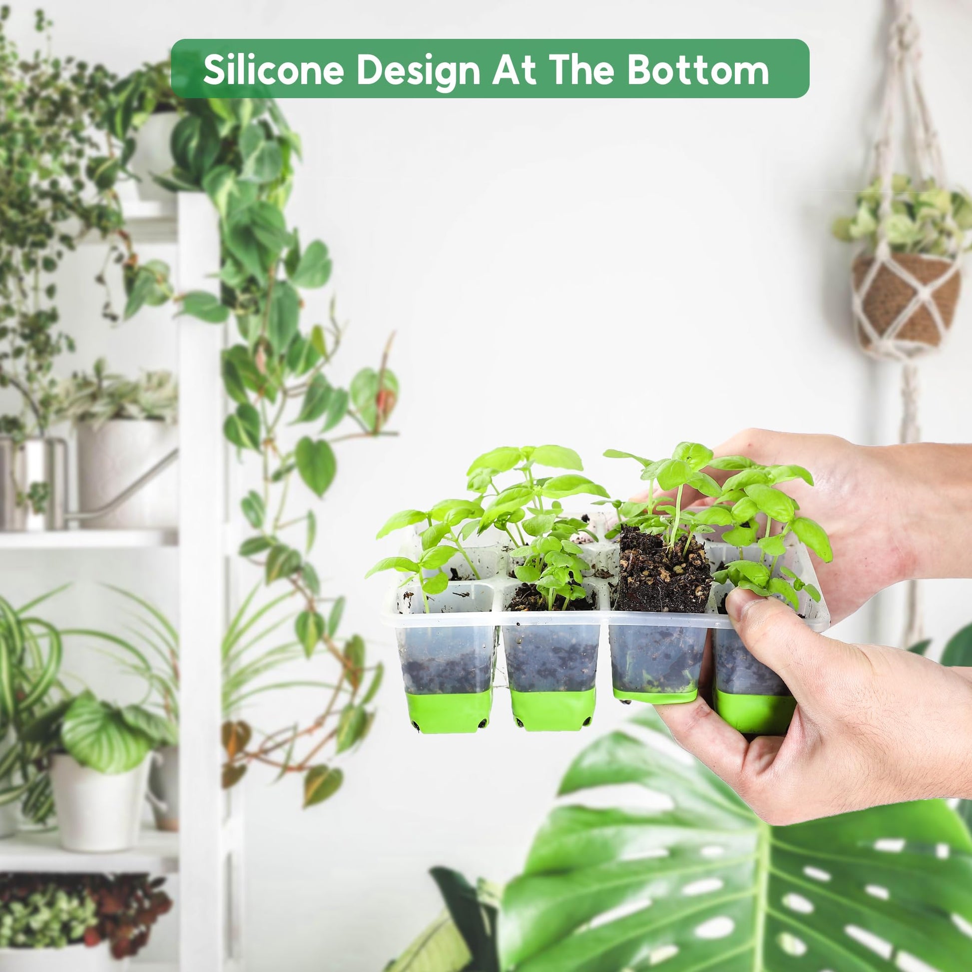 - Upgraded Silicone Cell - 2024 upgraded seed trays for seedlings reusable with 12 reusable pop-out cell per tray. And the bottom is designed with silicone, which can protect the seedlings very hold. And when you need to transplant, just gently pop out, the whole seedling and root system can be transplanted out completely without affecting the root system.